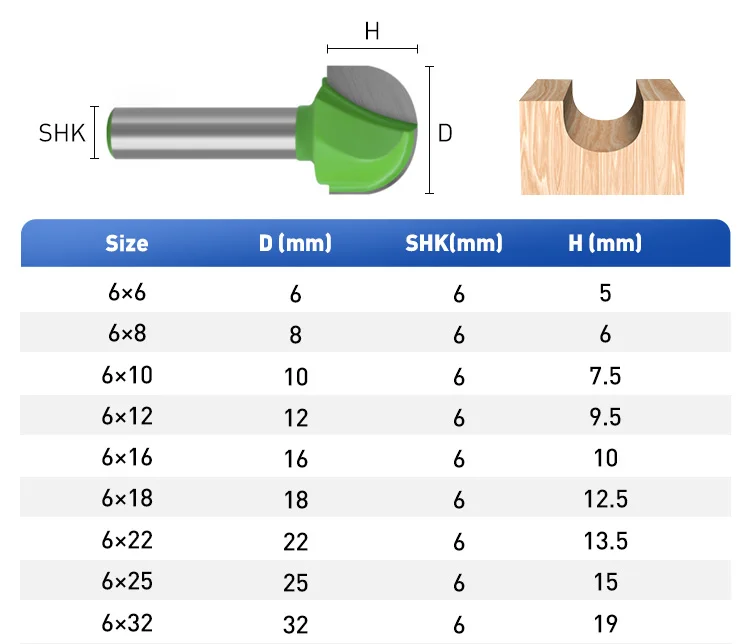 Round Bottom Over Nose Router Bit CNC 6mm Router Bit Set Carbide Ball End Mill 6mm 8mm for Wood Woodworking