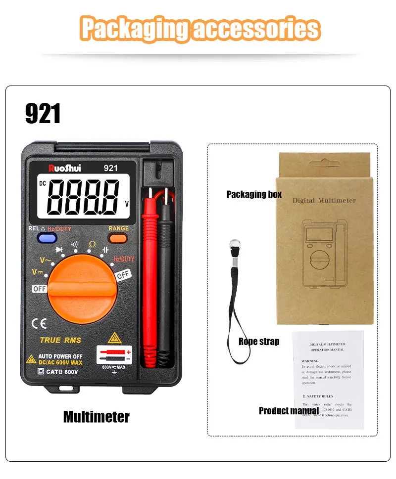RuoShui 921 Digital Multimeters 4000 Counts Mini Auto Range Resistance Tranistor Capacitance Multimetros Multimeter Digital