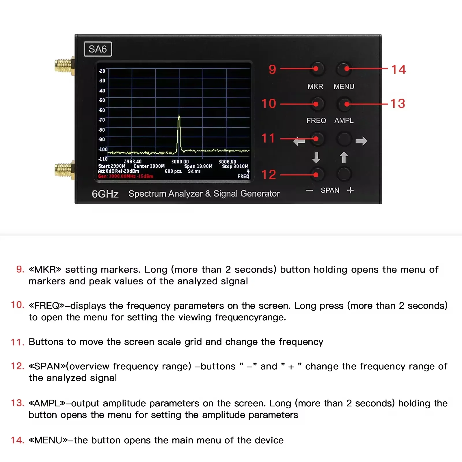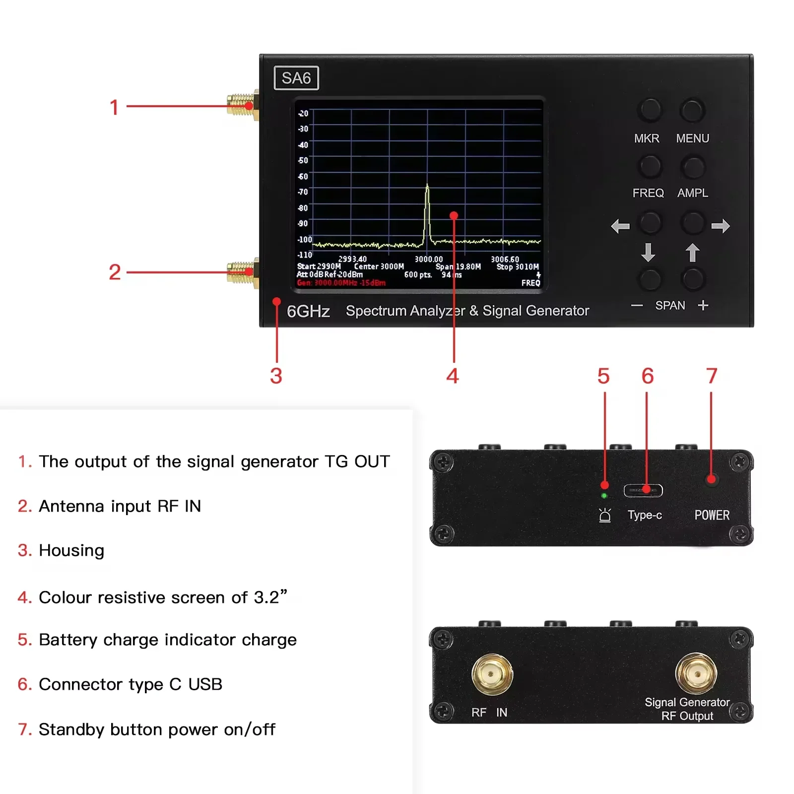 SA6 High Configuration 6GHz Spectrum Analyzer 35-6200MHz Signal Generator 9KHz-3GHz Near Field Probe Locate Interference Sources
