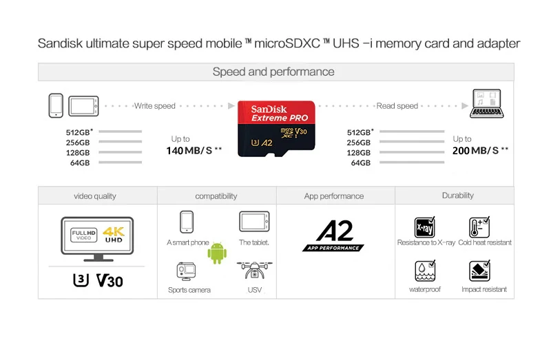 SanDisk V30 Extreme PRO Micro SD 32GB 64GB 128G 256G 512GB 1TB UHS-I Memory Card TF Card 200MB/s C10 U3 4K for Camera Steam Deck