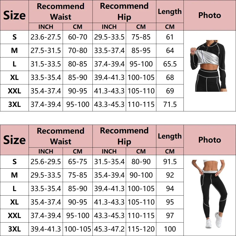 Sauna Set for Women Weight Loss Thermo Suit Hot Sweat Top Pants Fitness Jacket Leggings Fat Burner Fitness Exercise Workout Pant