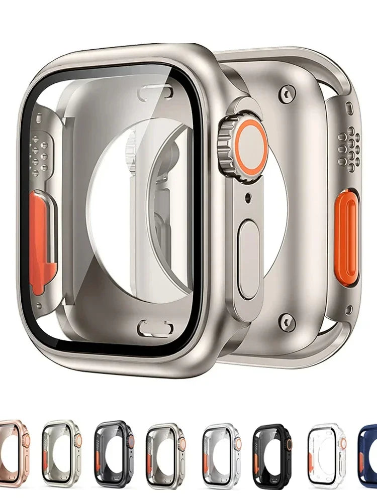 Screen Protector Cover for Apple Watch 44mm 45mm 40mm 41mm Hard PC Front Rear Bumper Case for iwatch 9 8 7 6 5 4 Change To Ultra