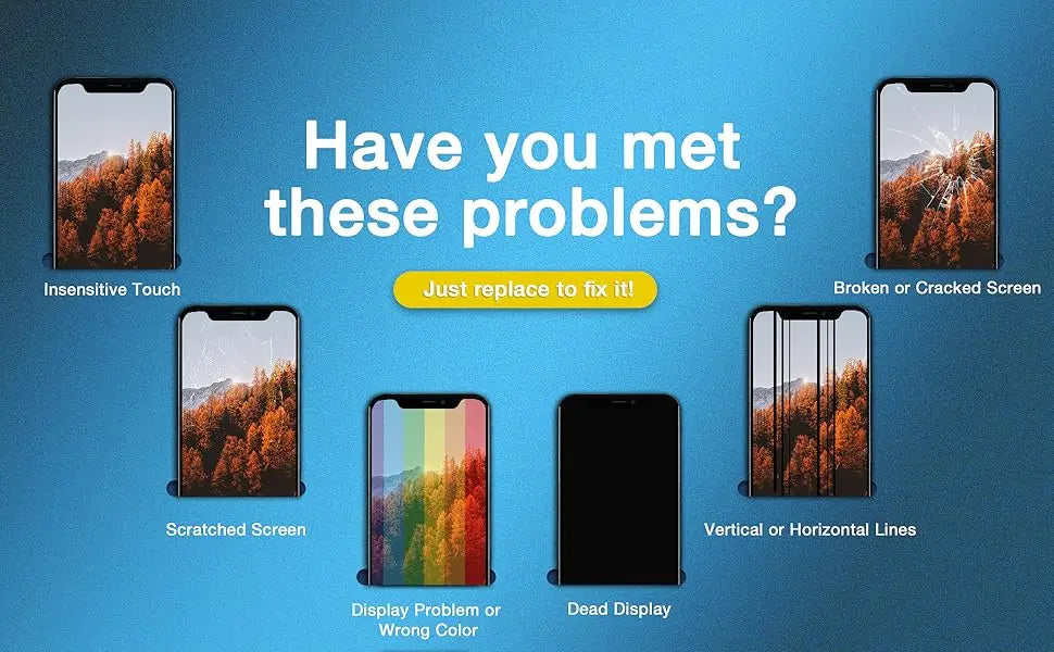 If there are some problems such as insensitive touch, scratched screen, display problem or wrong color, dead display, vertical or horizontal lines and broken or cracked screen, you can replace to fix it with our screen replacement set!