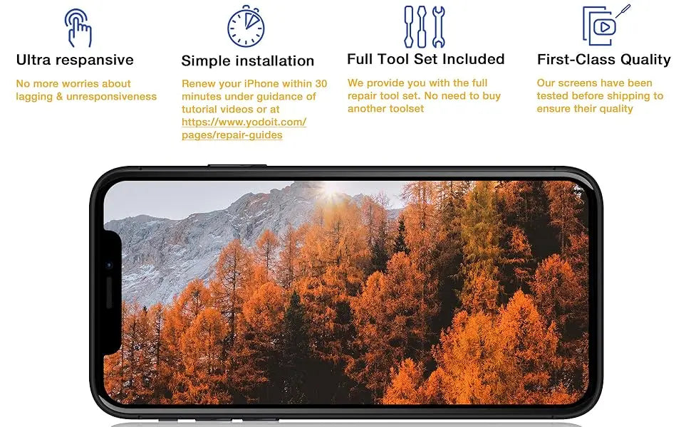 Our screens have been tested before shipping to ensure their quality of high definition, hard tempered glass, sensitive touch etc. We promise to provide first-class quality screen replacement.