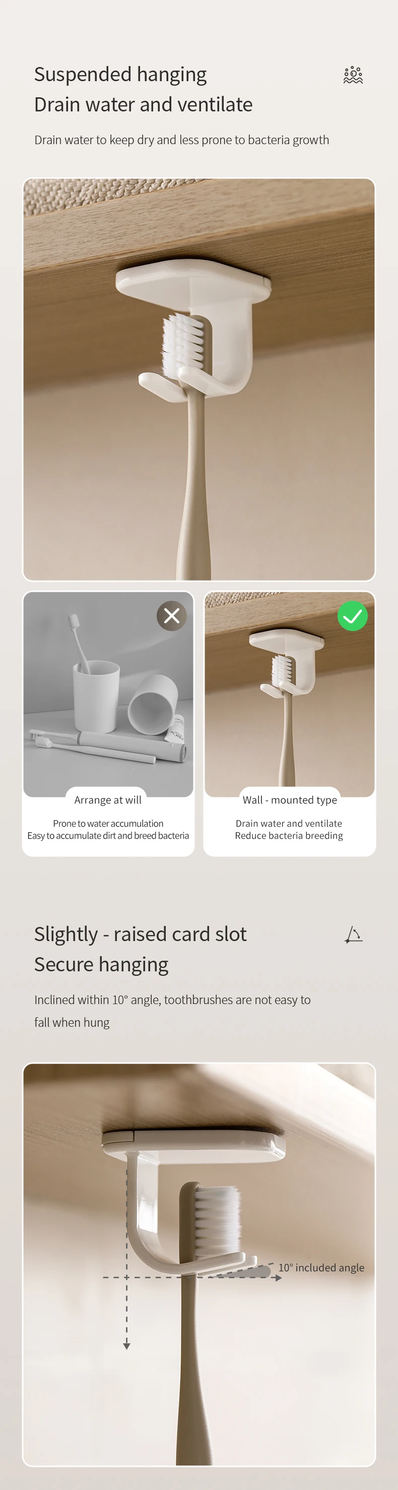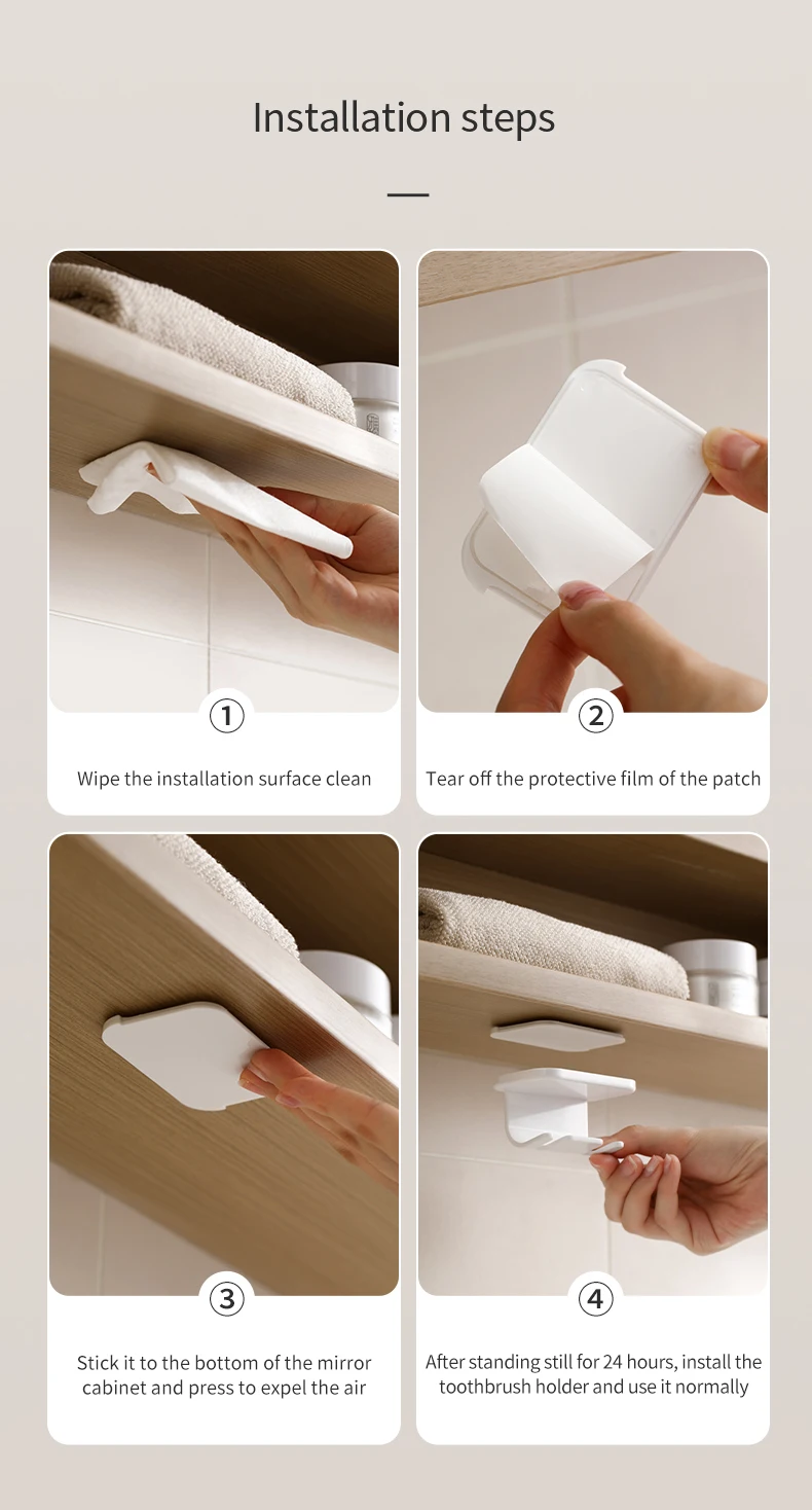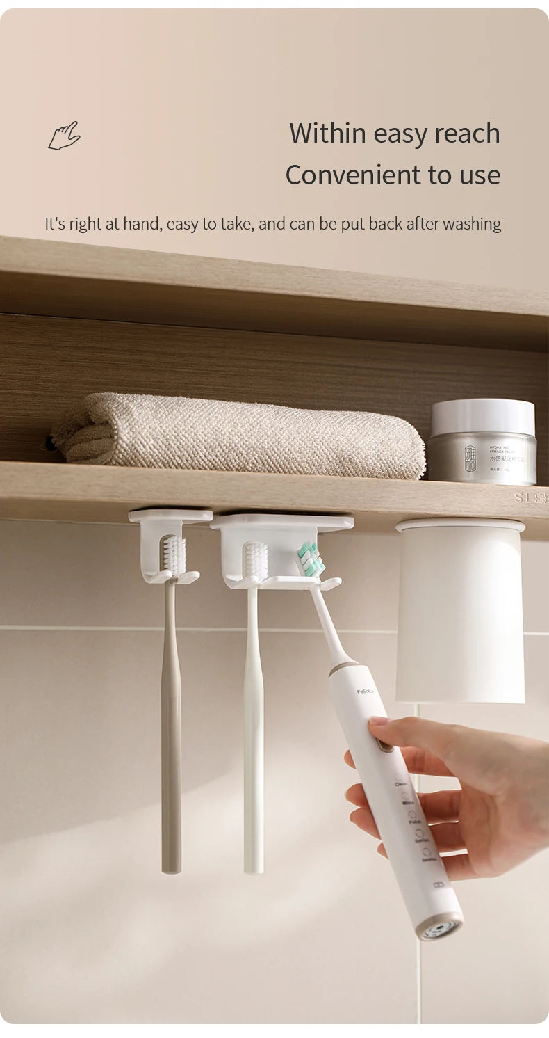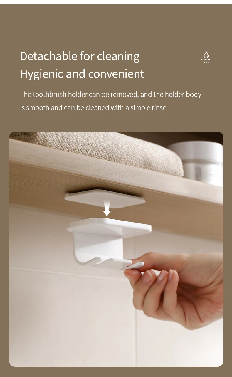 Self Adhesive Detachable Toothbrush Holder for Bathroom Countertop Wall Mounted Electric Toothbrush Plastic Storage Hook