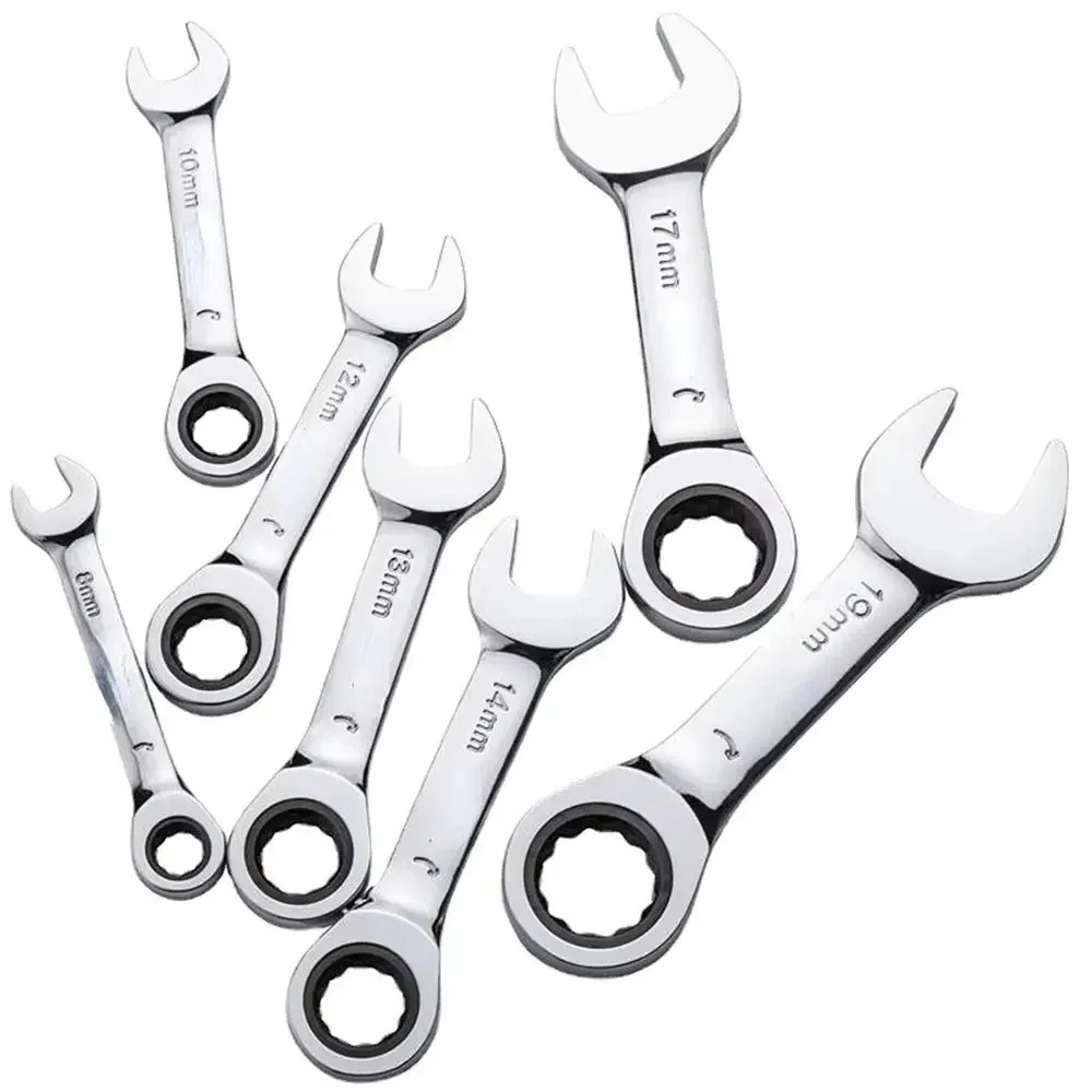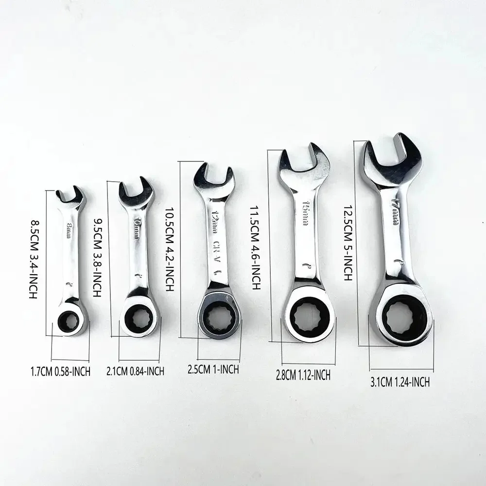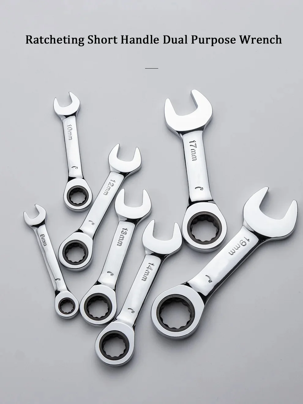 Short Handle Ratchet Spanner 6/7/8/9/10/11/12/13/14/15/16/17/18/19mm Fix Head Ratcheting Wrench Professional Spanner Hand Tools