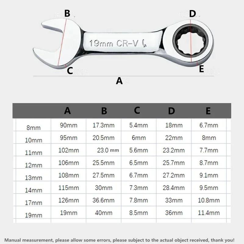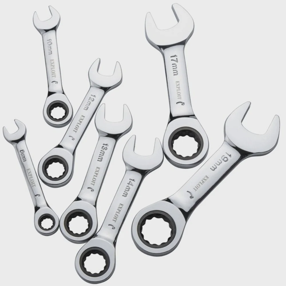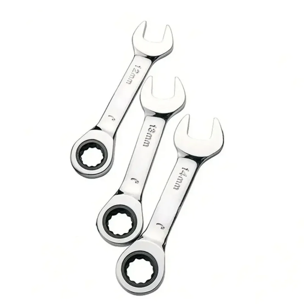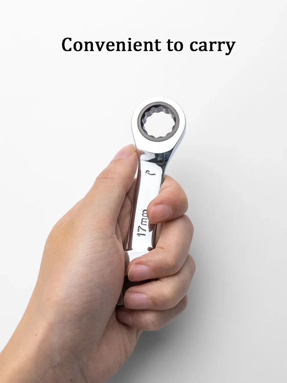 Short Handle Ratchet Spanner 6/7/8/9/10/11/12/13/14/15/16/17/18/19mm Fix Head Ratcheting Wrench Professional Spanner Hand Tools