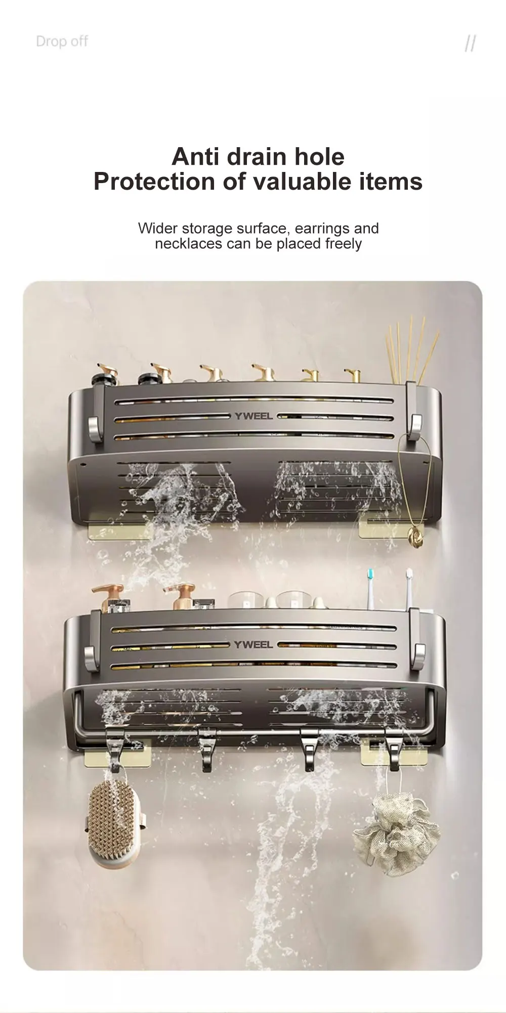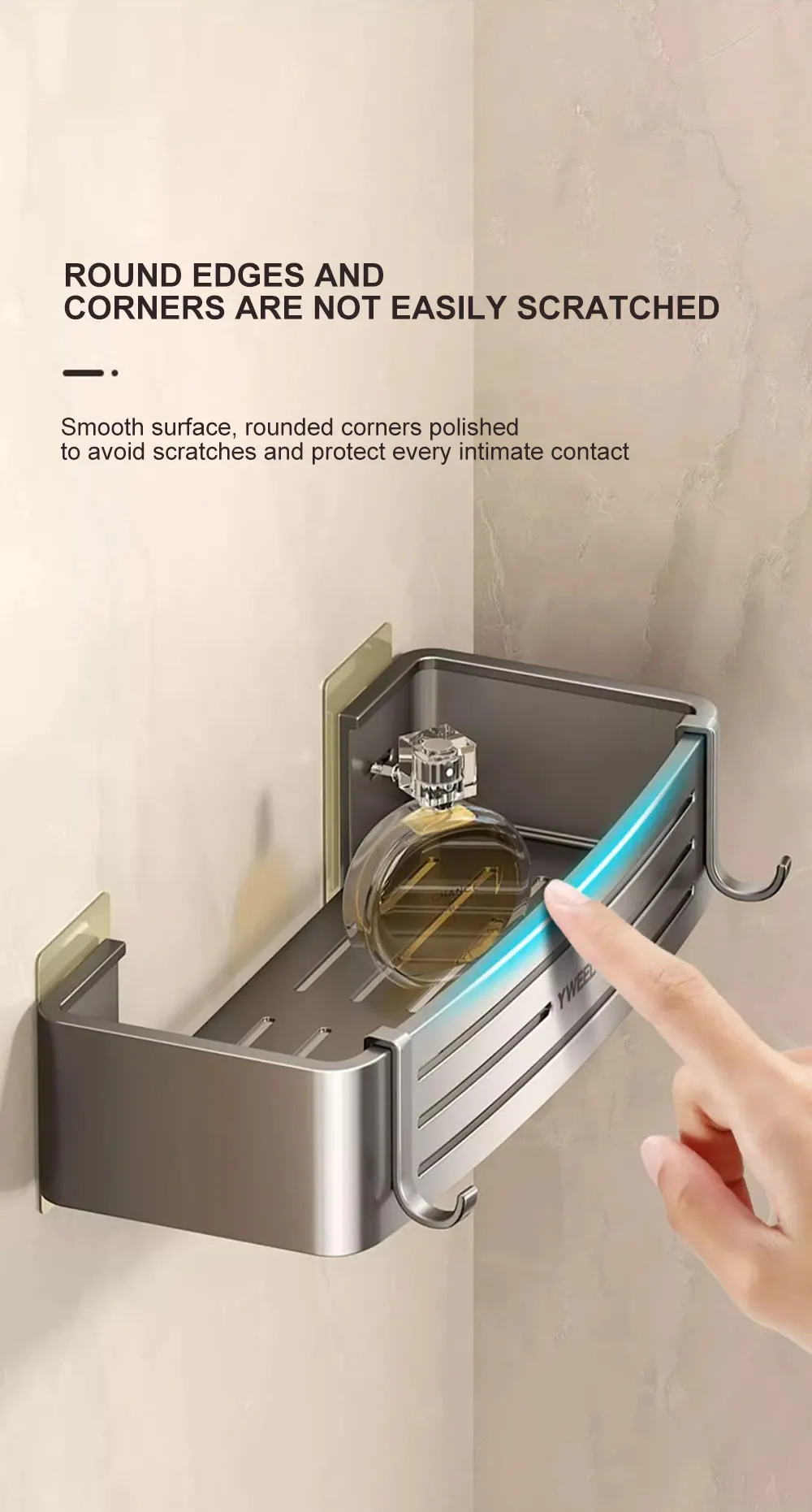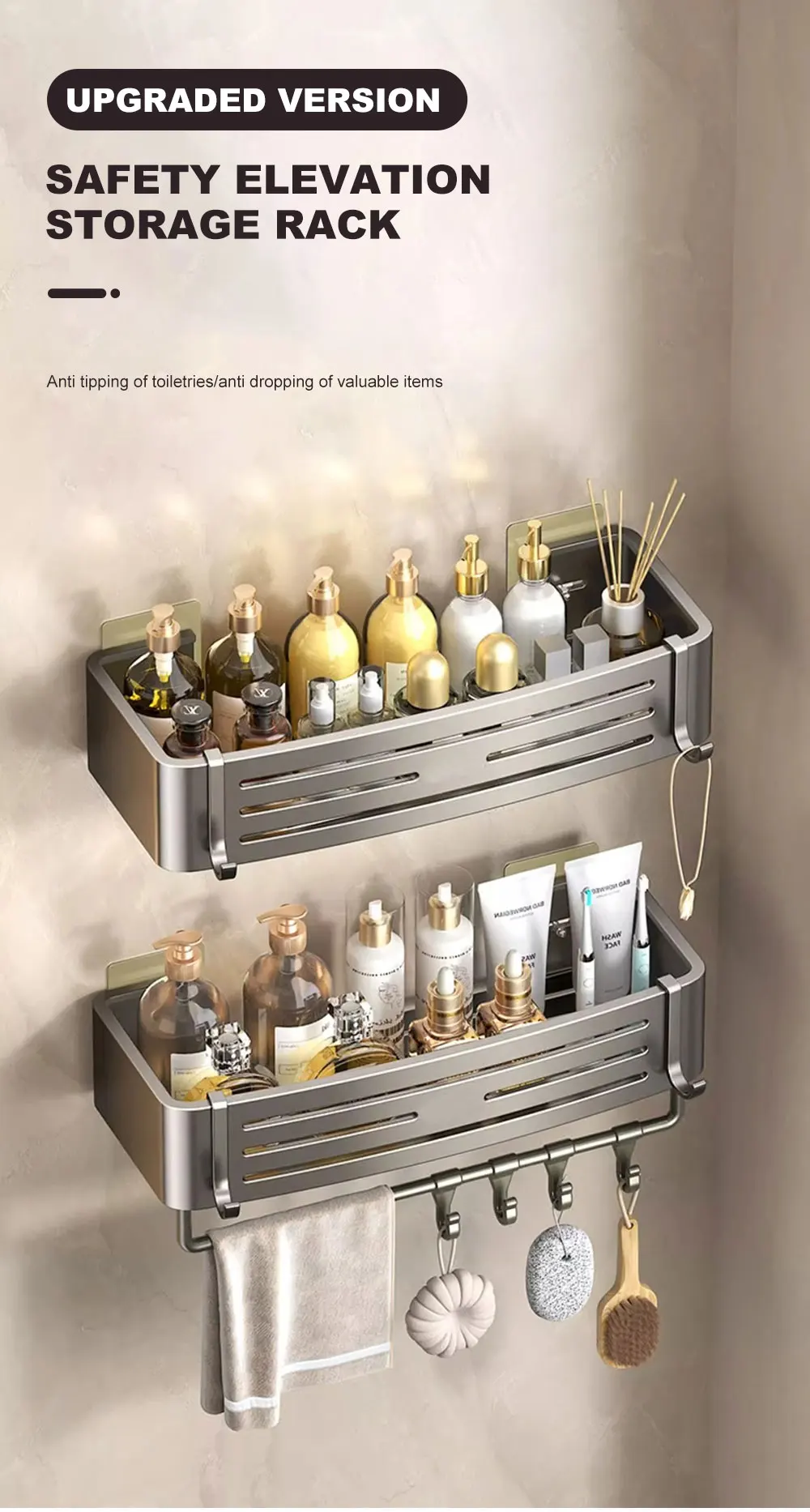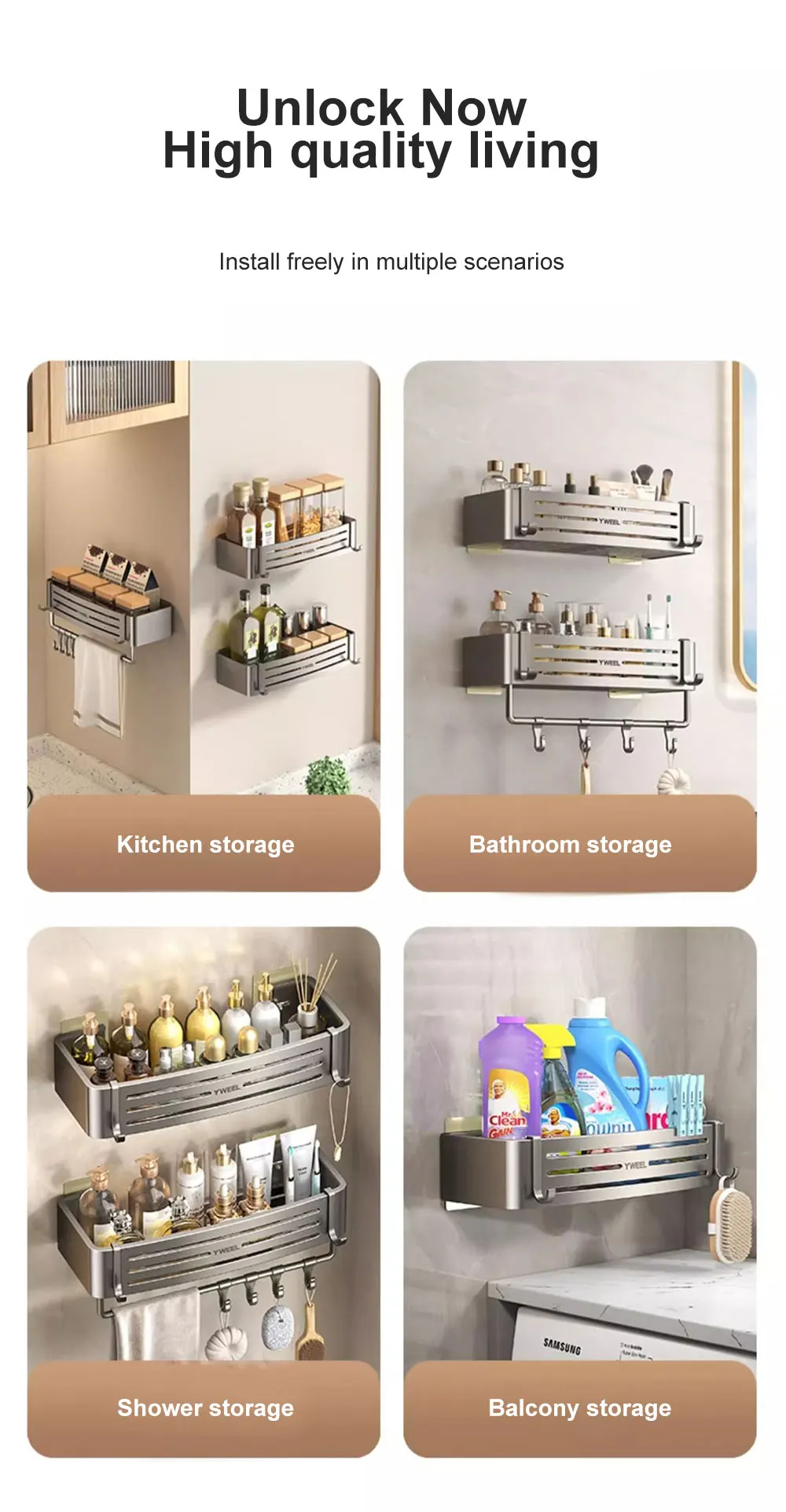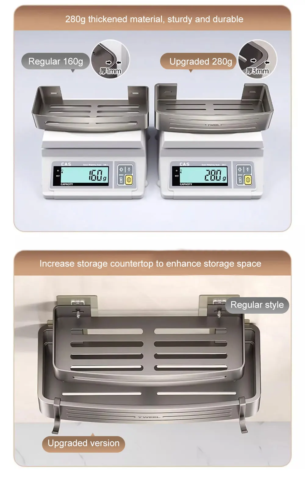 Compared with stainless steel or painted finishes, our bathroom shelves are made of sandblasted anodized aluminum technology, which is more resistant to corrosion and scratches and provides superior texture. The surface is specially treated to resist oxidation in humid environments, ensuring that the shelves maintain a like-new look for a long time.