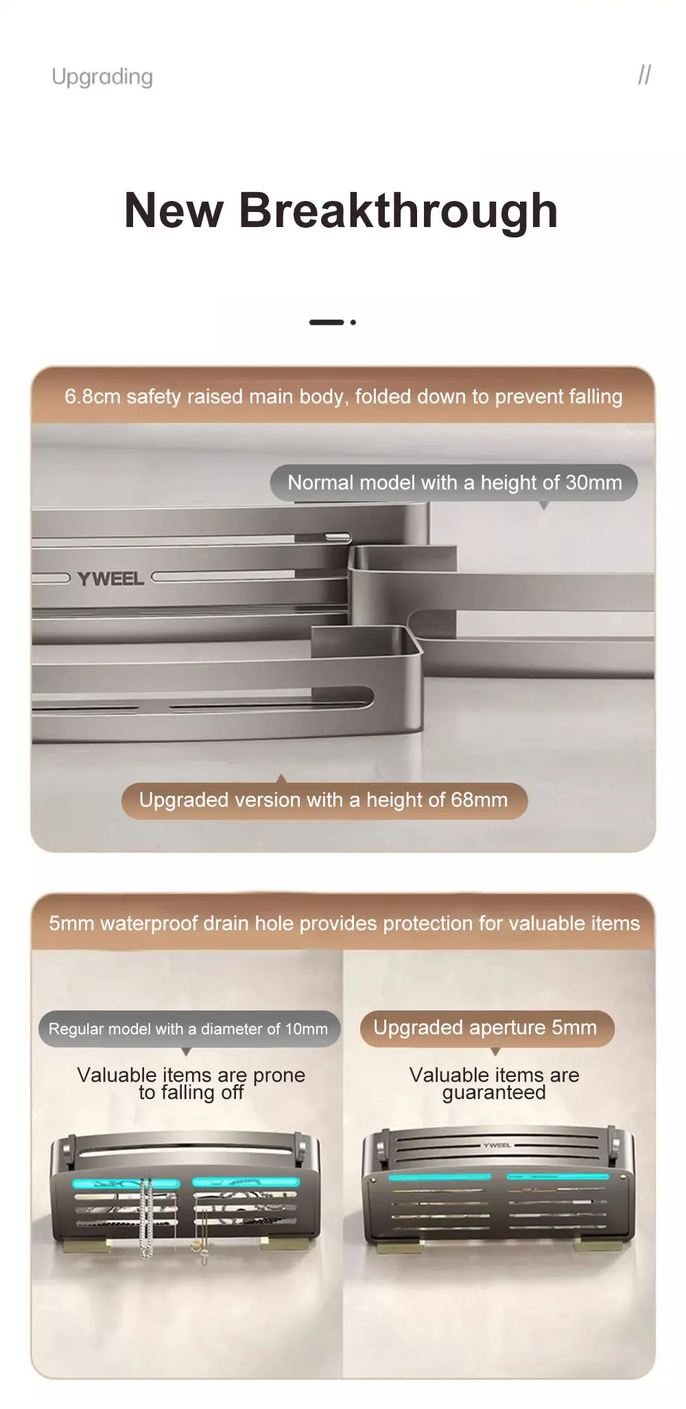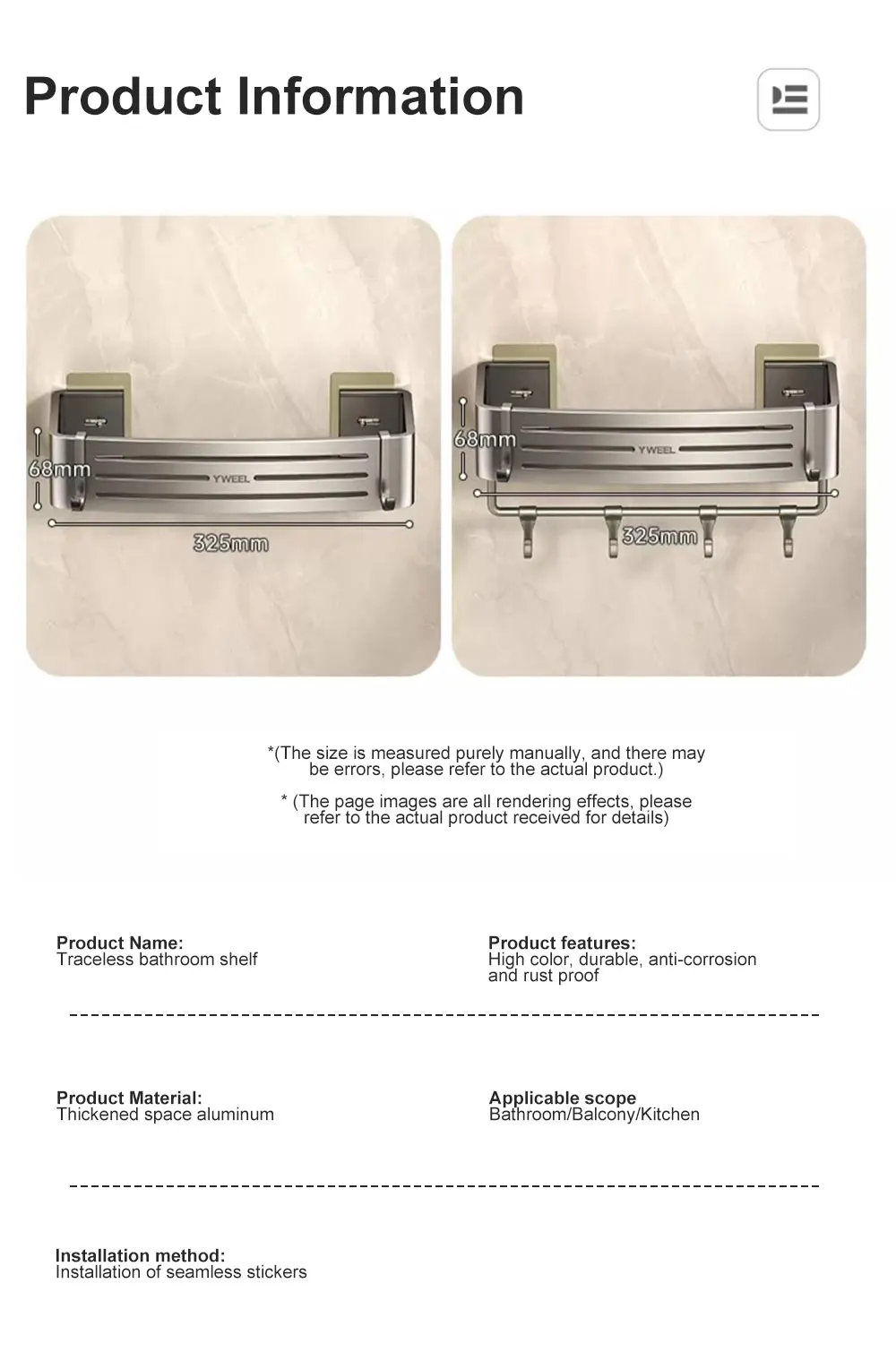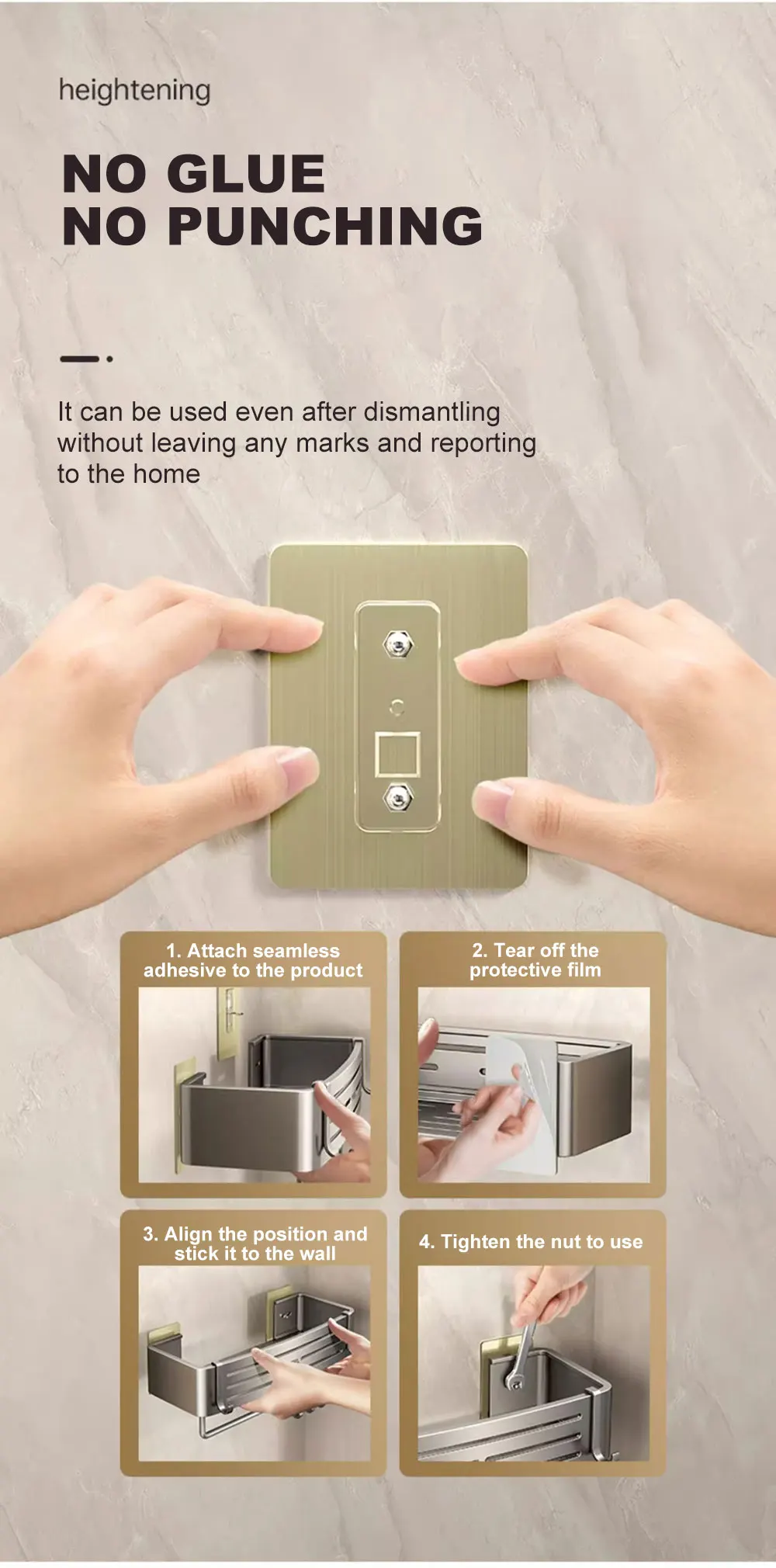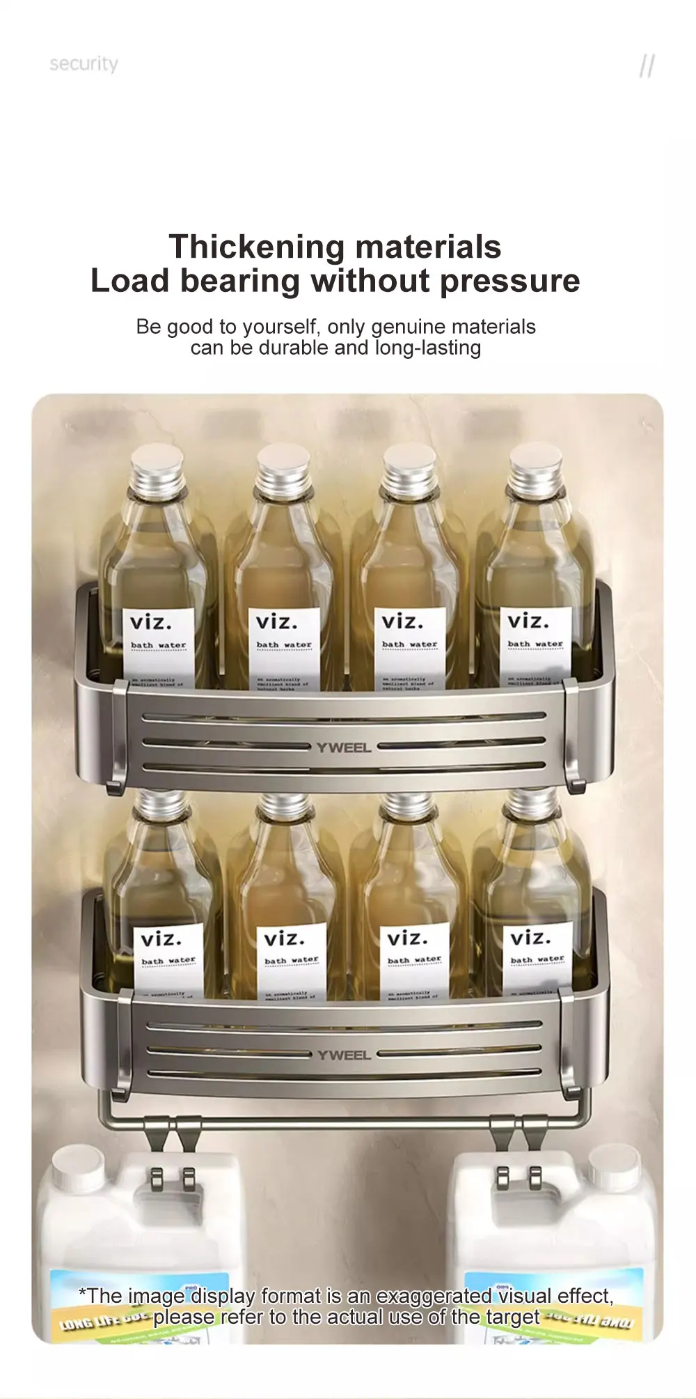 With enhanced load-carrying capacity, our shelves are made of thicker material with a strong, non-marking adhesive. You can rest assured that your shampoo bottles can be placed on the shelves without worrying about the shelves being deformed or damaged by heavy loads.