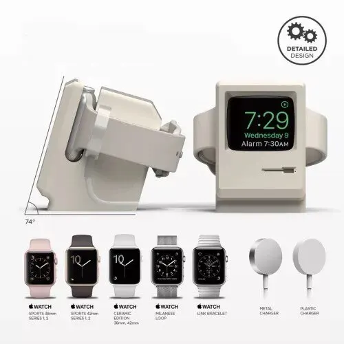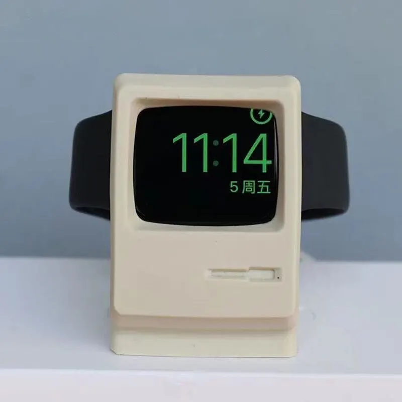 Silicone Charger Stand For Apple Watch 7 6 5 4 IWatch 3 2 1 Charging Dock Holder Retro Computer Pattern Keeper Bracket Base