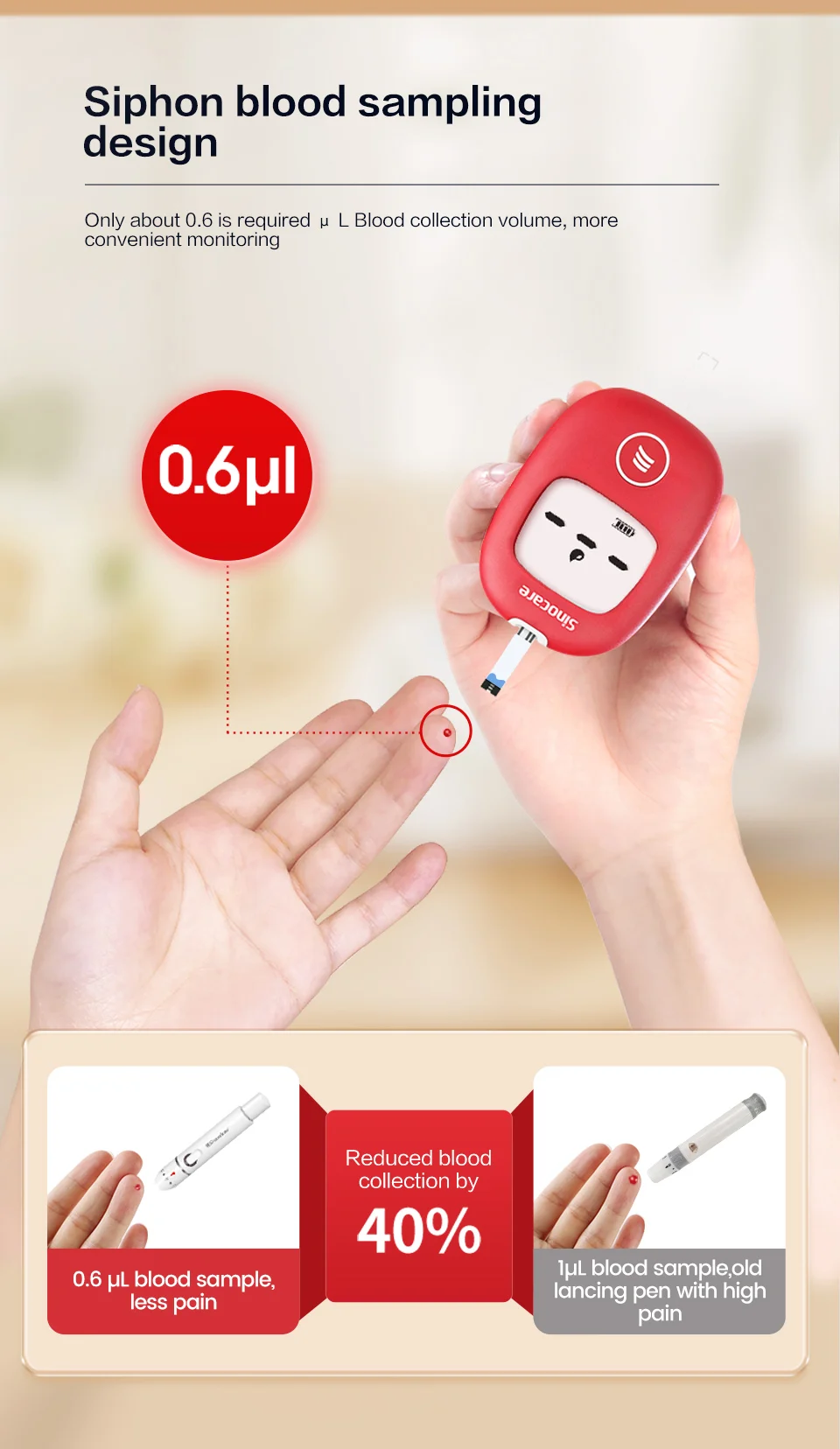Sinocare Safe AQ Smart Blood Glucose Meter 50pcs Glucose Test Strips Lancets Devices Glucometer Kit Diabetic Diabetes Digital