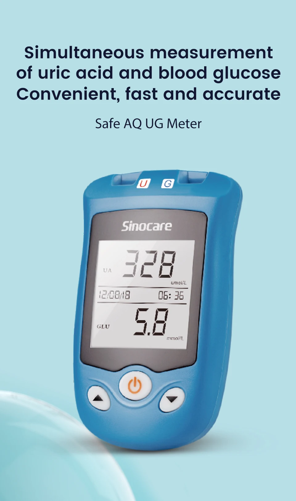 Sinocare Safe AQ UG Uric Acid and Blood Glucose 2in1 Test Meter Kit Blood Sugar Minotor with Strips Lancets for Diabetes Gout