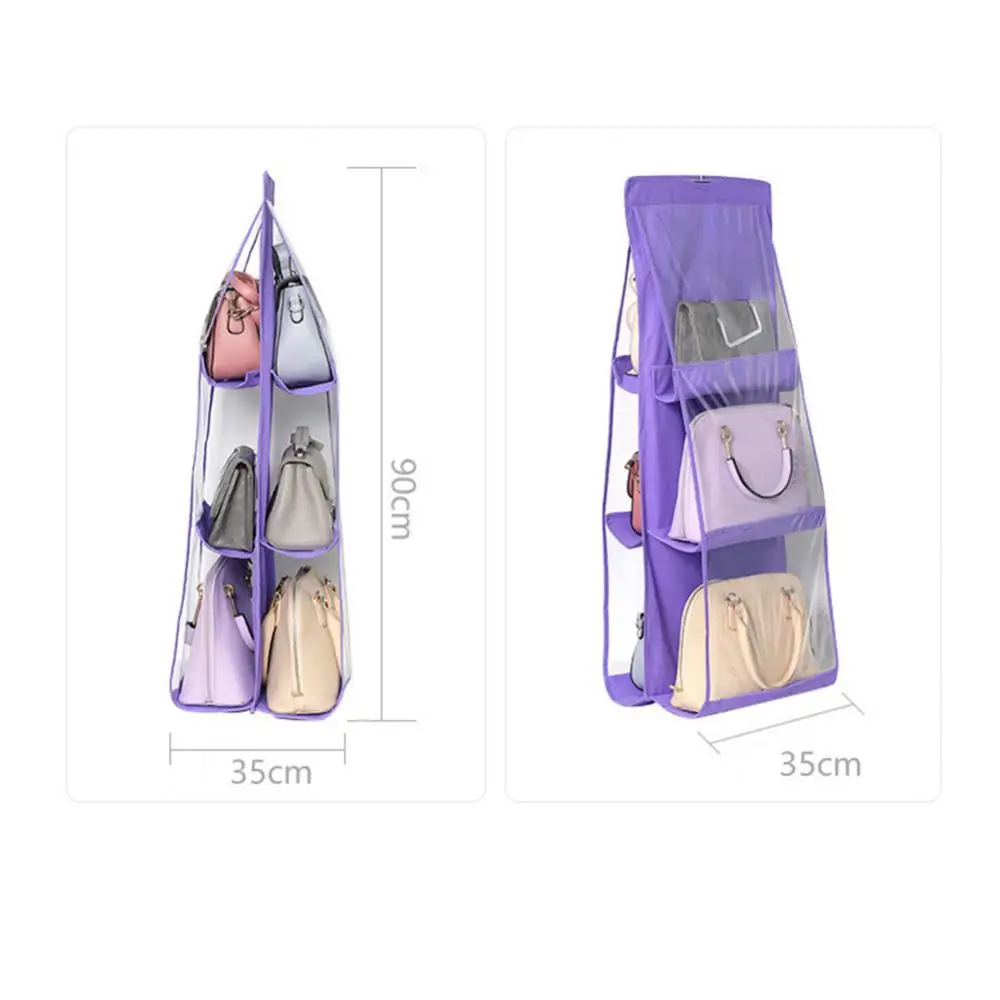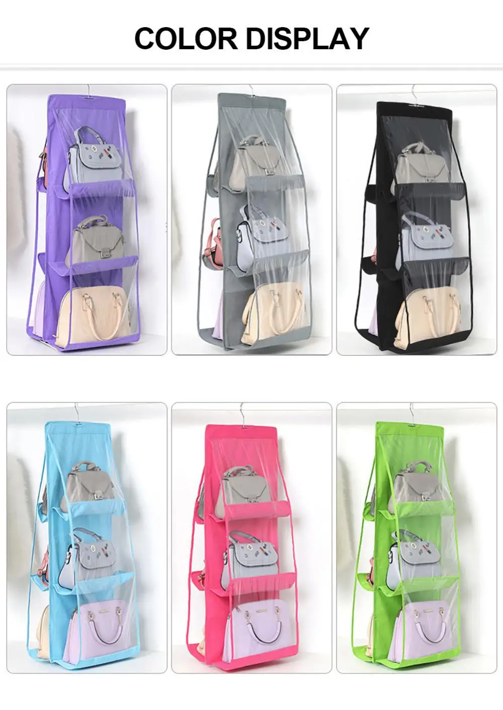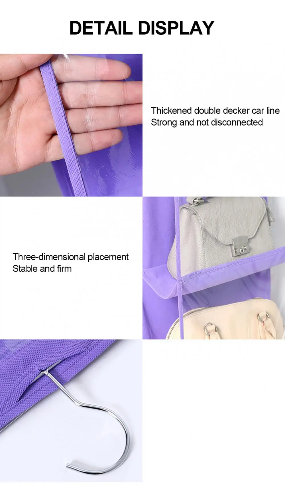 1. Load Capacity: The hanging handbag organizer have 6 pockets, well fit with your handbag.