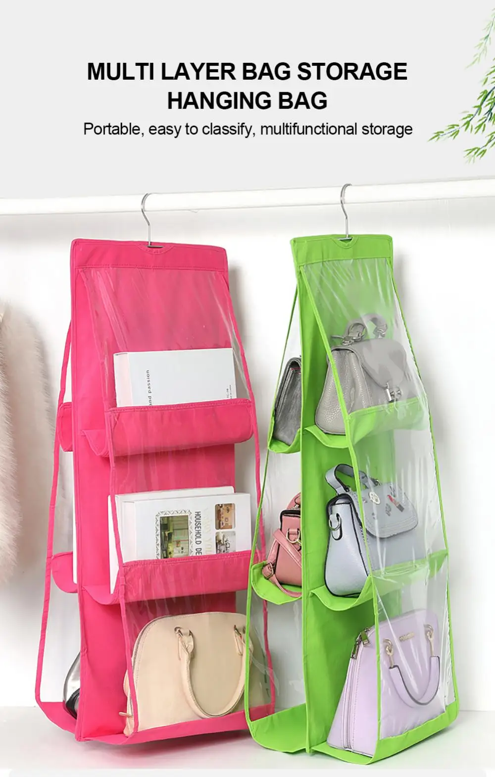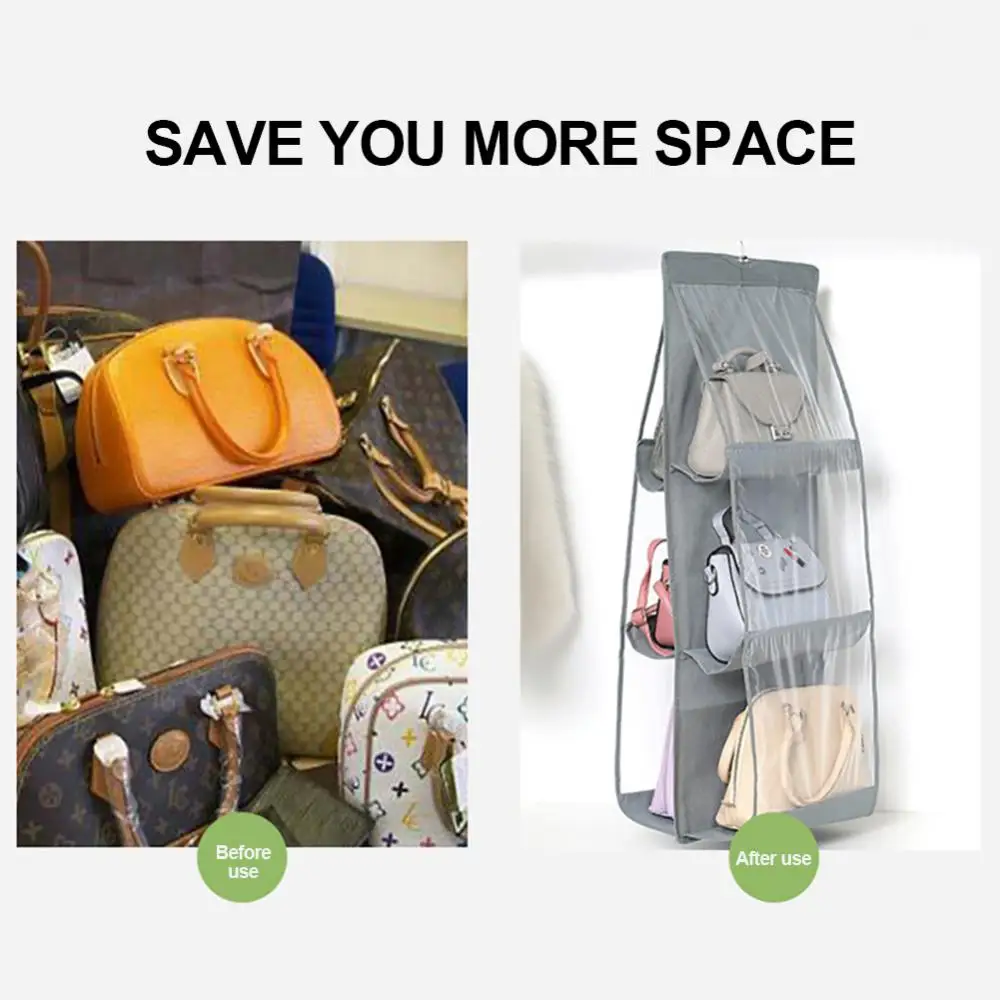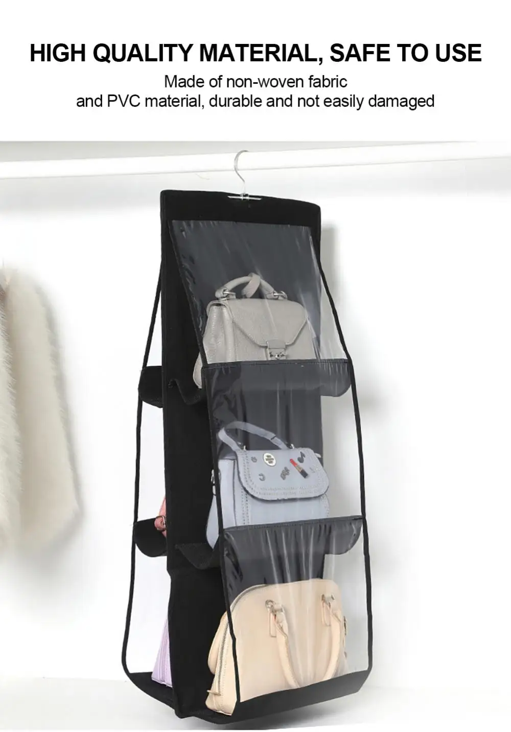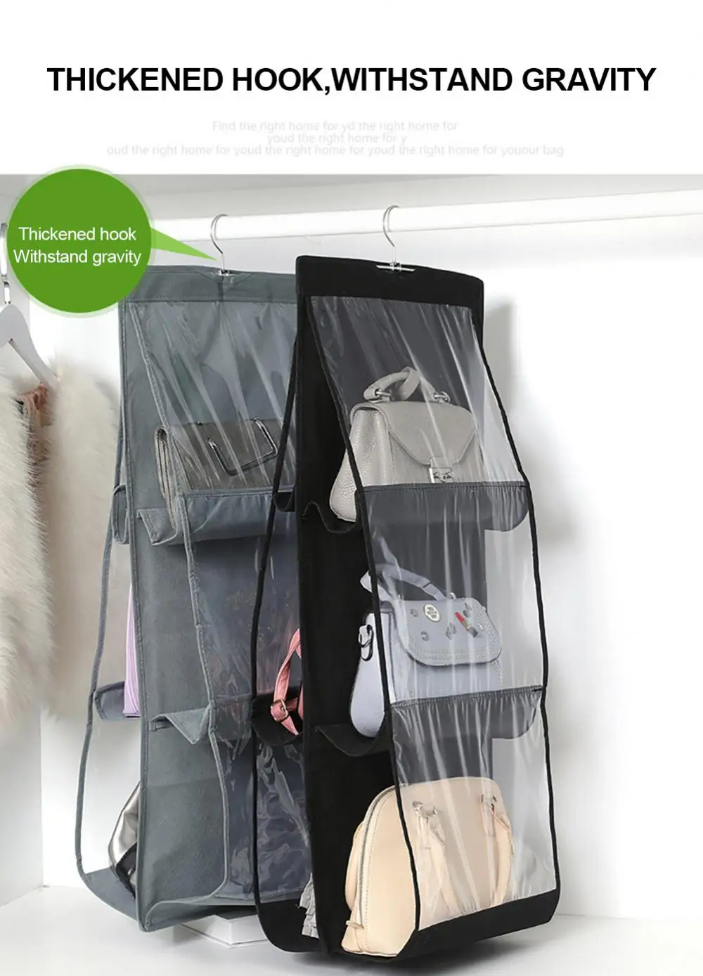 1. Load Capacity: The hanging handbag organizer have 6 pockets, well fit with your handbag.