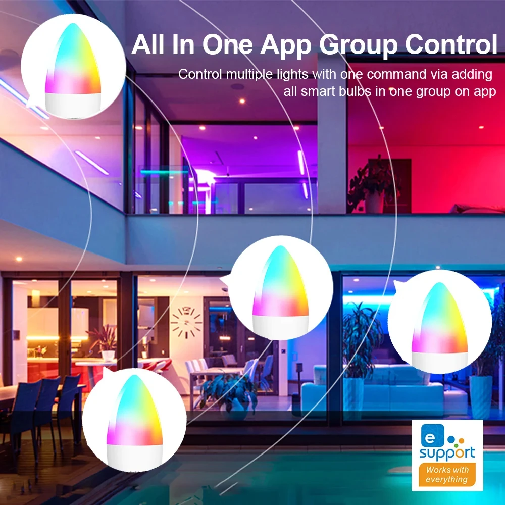 • App Control :With its EWelink Zigbee Candle Lamps RGB APP, this bulb can be controlled via voice command, making it a hands-free solution for your room's ambiance.