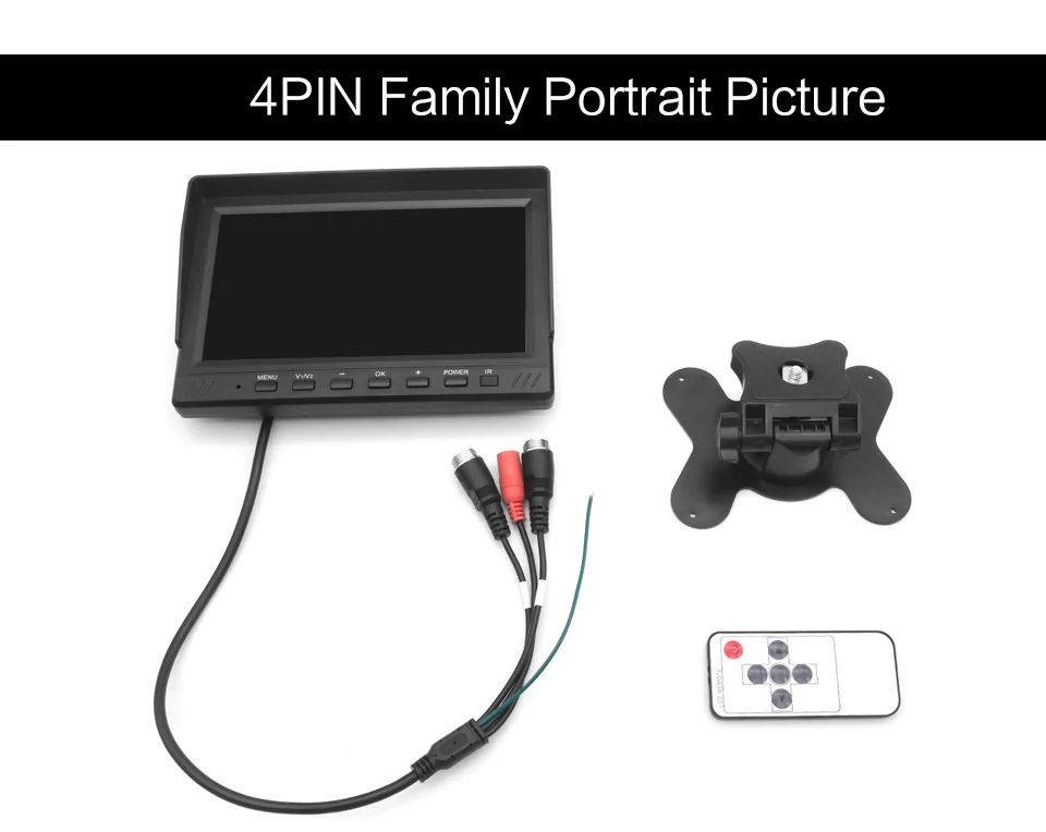 Smartour AHD 7inch TFT LCD Car HD Monitor Rear View Monitor Support CVBS 1080P AHD Camera 2 x 4PIN Video Input