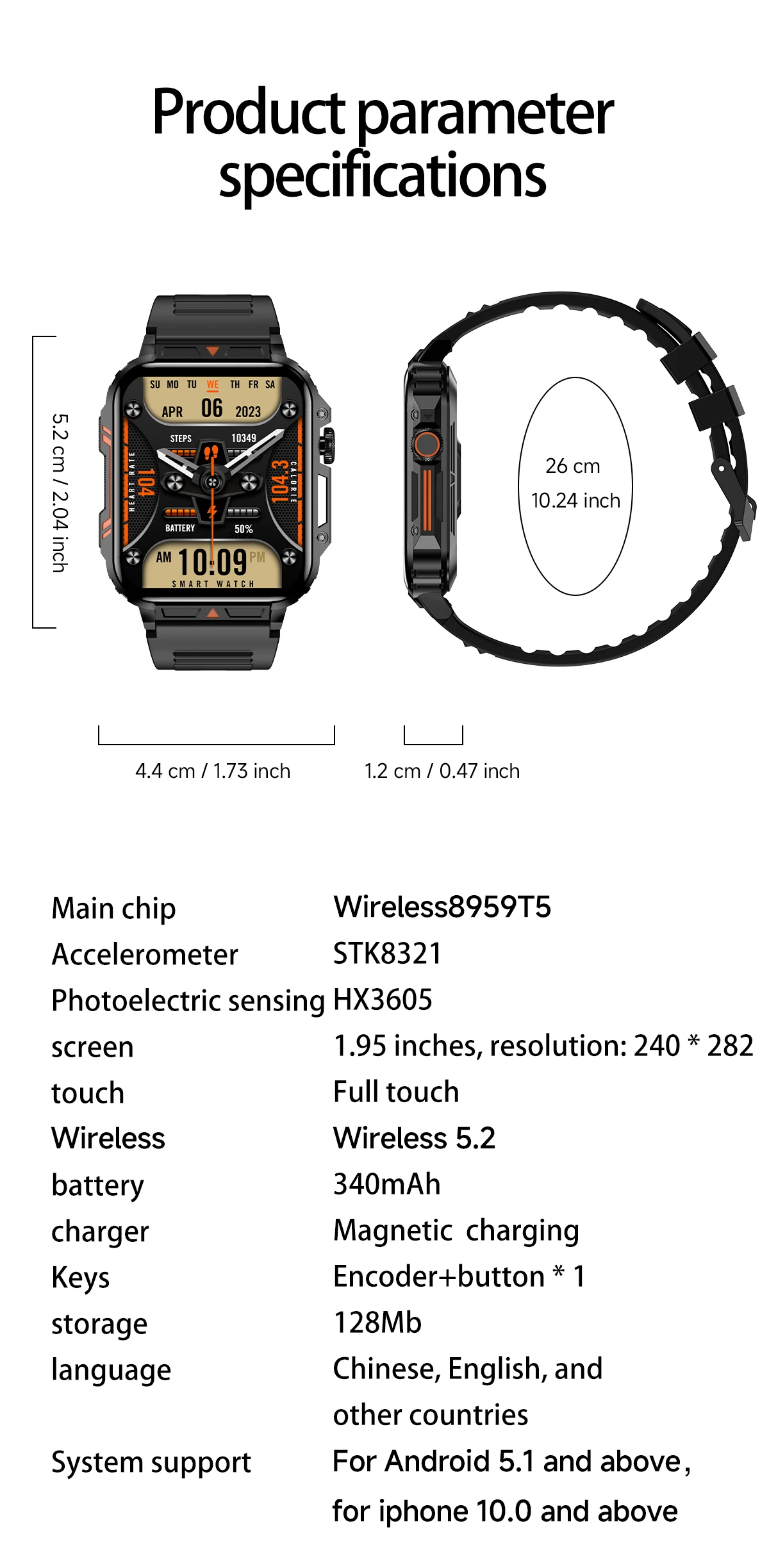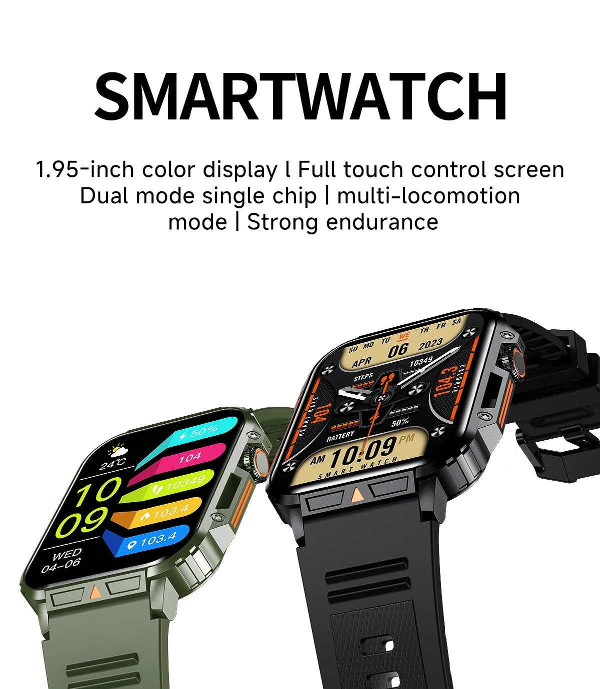 Smartwatch 1.95'' IPS Screen Health Monitoring 340 Big Battery IP68 Waterproof Sport Fitness Android IOS for Men