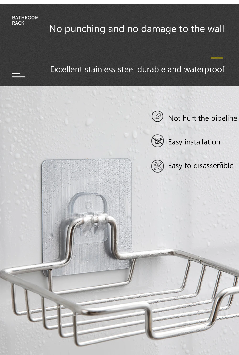 Soap Rack Wall Mounted Soap Holder Stainless Steel Soap Sponge Dish Bathroom Accessories Soap Dishes Self Adhesive