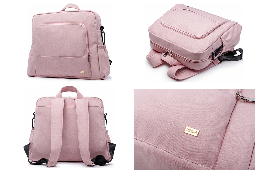 Soboba Solid Diaper Bag Fashion Waterproof Multi-functional Diaper Backpack Nursing Changing Bag for Baby Large Stylish Bag