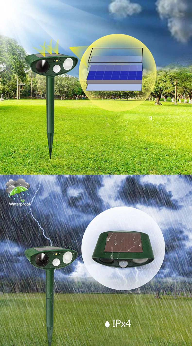 Solar Animal Repellant Ultrasonic Cat Dog Repellant Solar Powered Waterproof Animal Deterrent