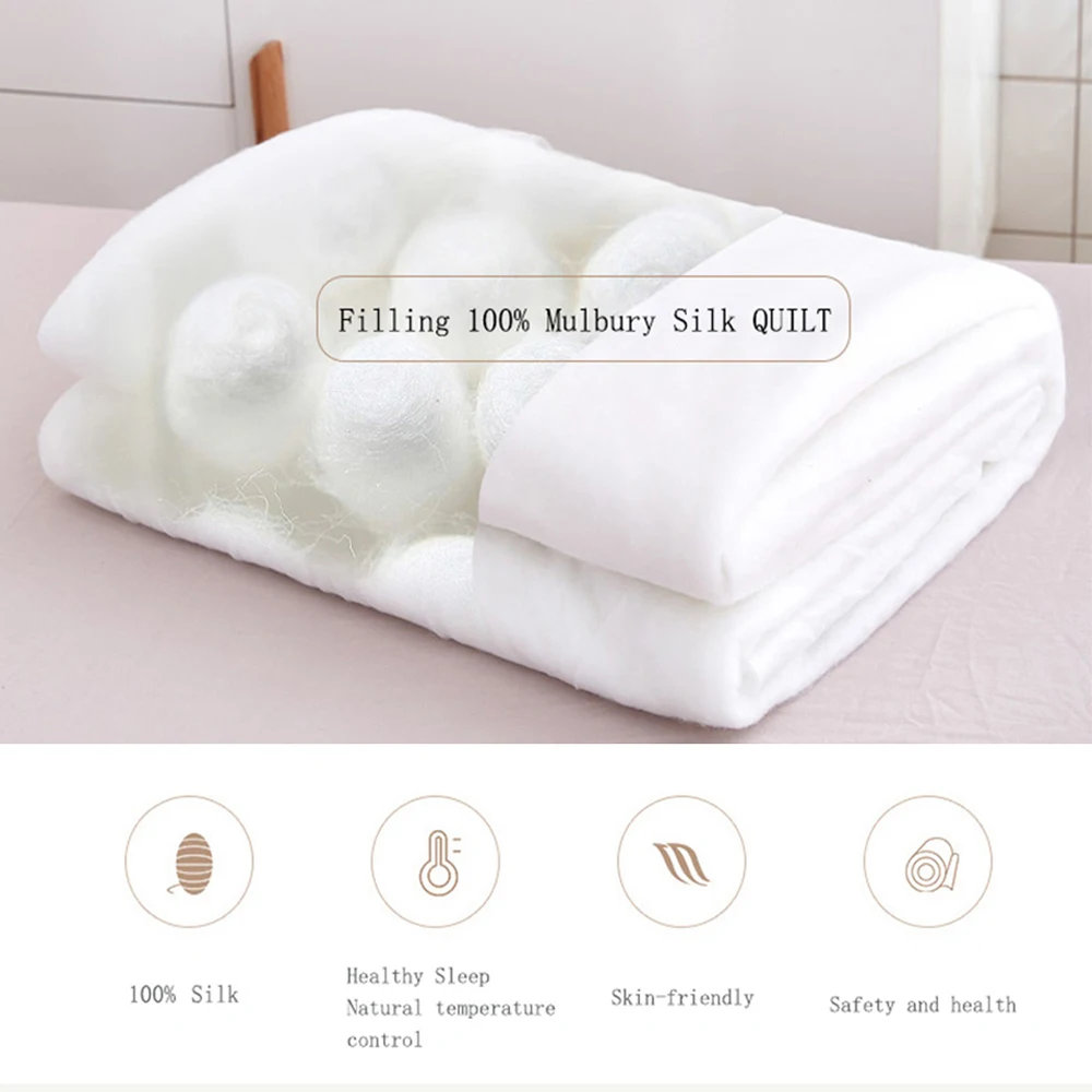 Sondeson Luxury Natural 100% Silk Quilt Warm Jacquard White Duvet Soft Comforter Queen King Silky Healthy Blanket For Sleep 1pcs