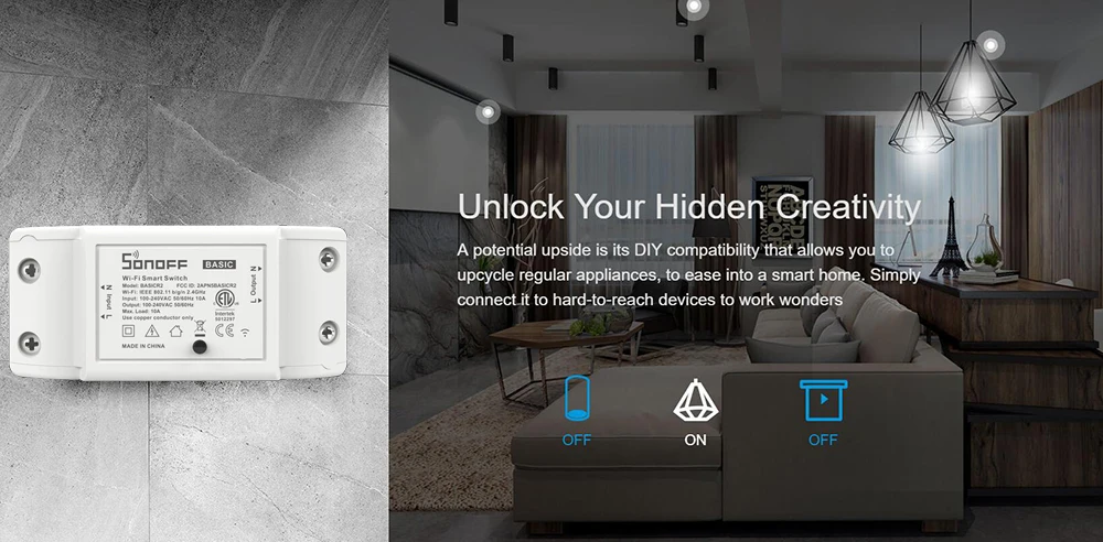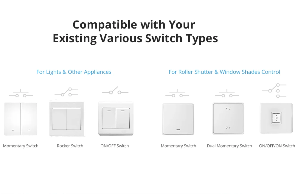This is a mini and compact DIY smart switch used for different kinds of switch boxes, even the smallest EU standard switch box. Convenient to automate your home appliances with eWeLink app through your smartphone or tablet or your voice command. Support to connect an external rocker light switch unable to automatically spring back for easily managing connected devices in your home, both on your phone or directly from the wall. It supports the DIY mode (designed for developers) which allows users to integrate MINI into worldwide third-party open source smart home control system to achieve LAN control without cloud service, such as Home Assistant, openHAB, ioBroker .etc.