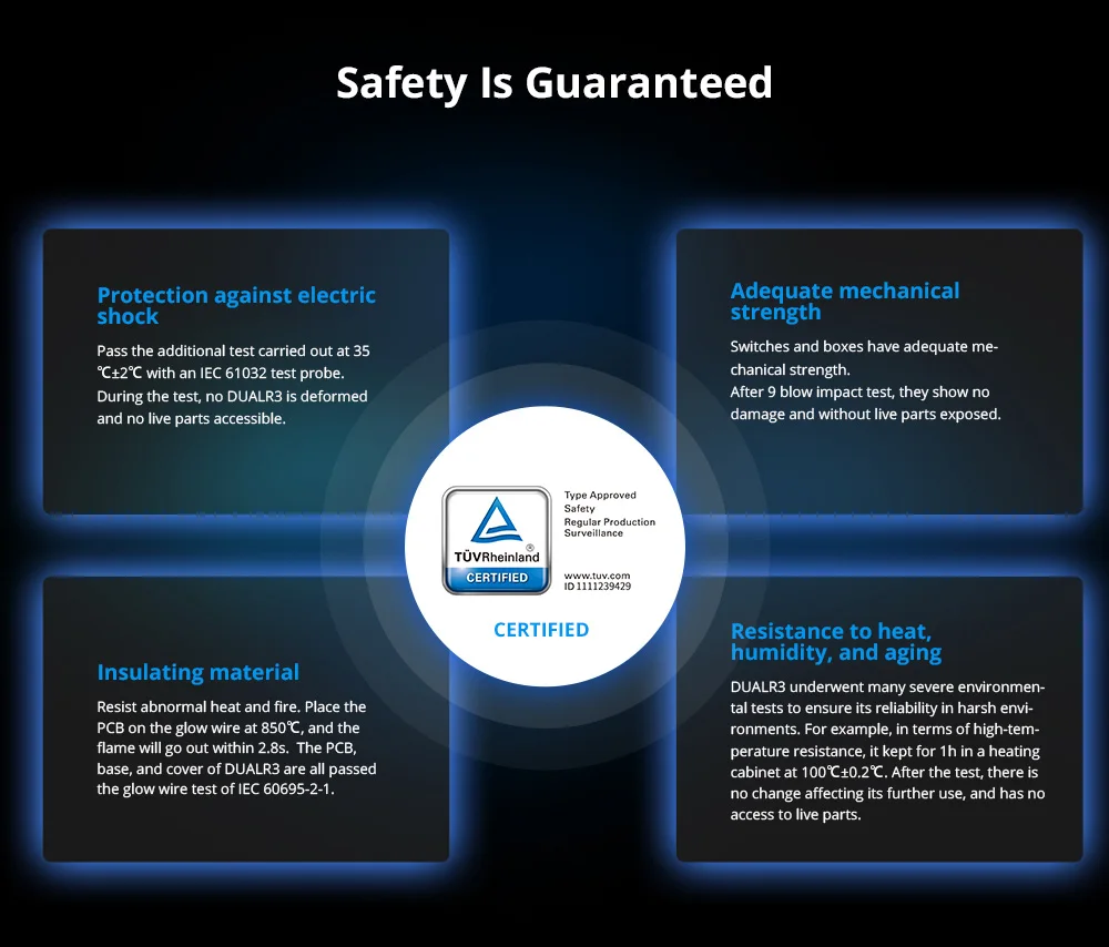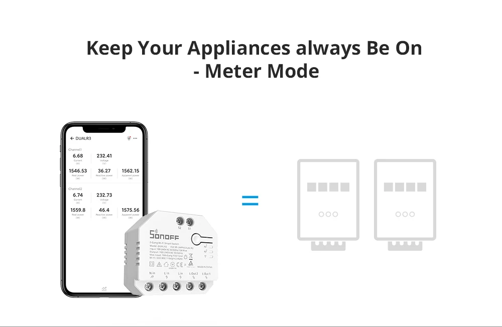 SONOFF DUALR3/DUALR3 Lite takes your home to the next level. DUALR3/DUALR3 Lite is a flush-mounted Wi-Fi smart dual relay switch module that is installed behind any standard switch to transfer it into a smart switch for wireless remote control with mobile devices or voice command. Unifying your home appliances into an integrated wireless network to make them communicate with one another which is convenient for you to manage and control, including lights, home appliances and motorized facilities like roller shutters, window shades, blinds, awning, etc.