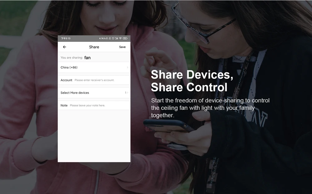 Start the freedom of device-sharing to control the ceiling fan with your family together