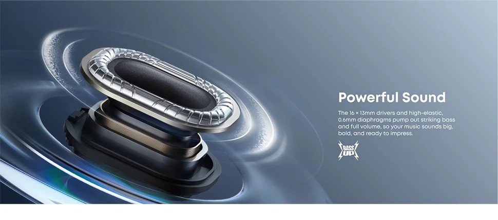 Feel the power in every beat, even in noisy environments. With 16 × 13mm drivers, a high-elastic diaphragm,