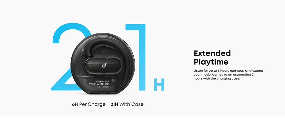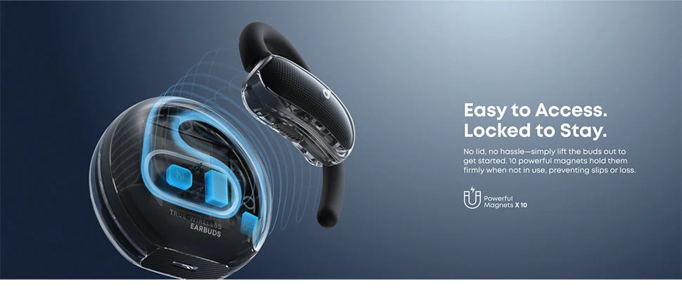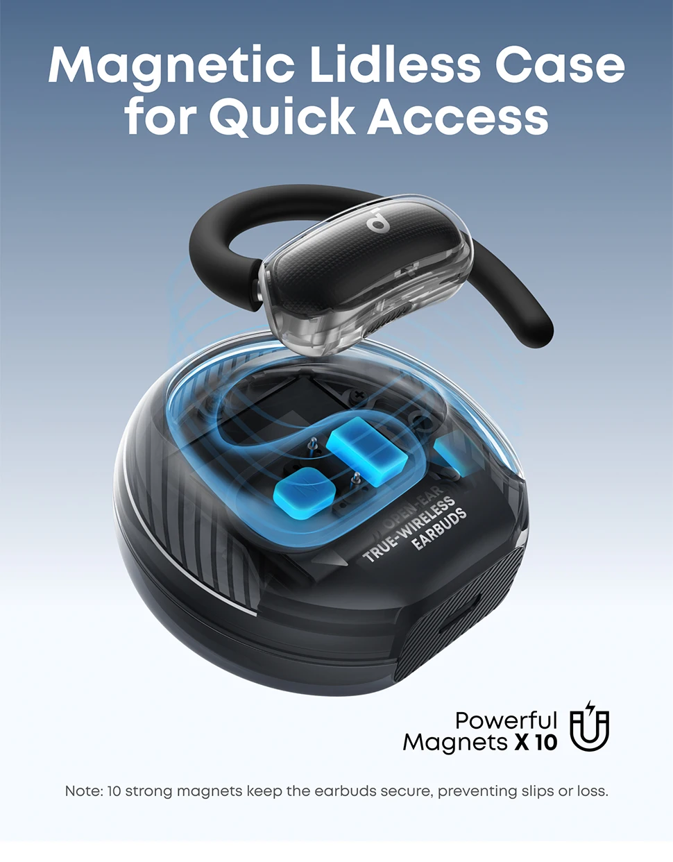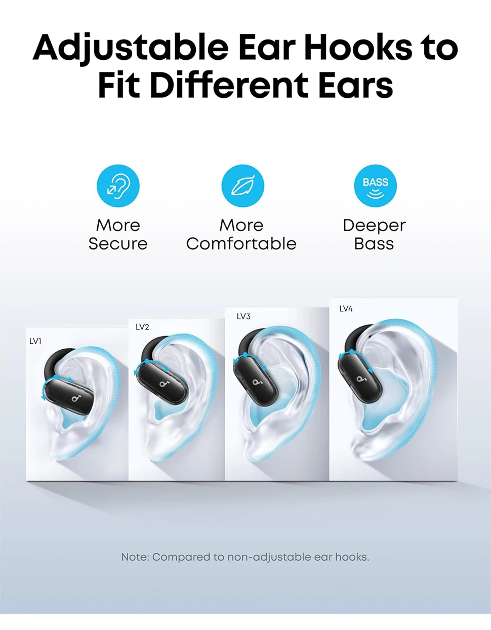 soundcore's innovative 4-level adjustable ear hooks ensure a comfortable fit tailored to over 99% of ear shapes and sizes.