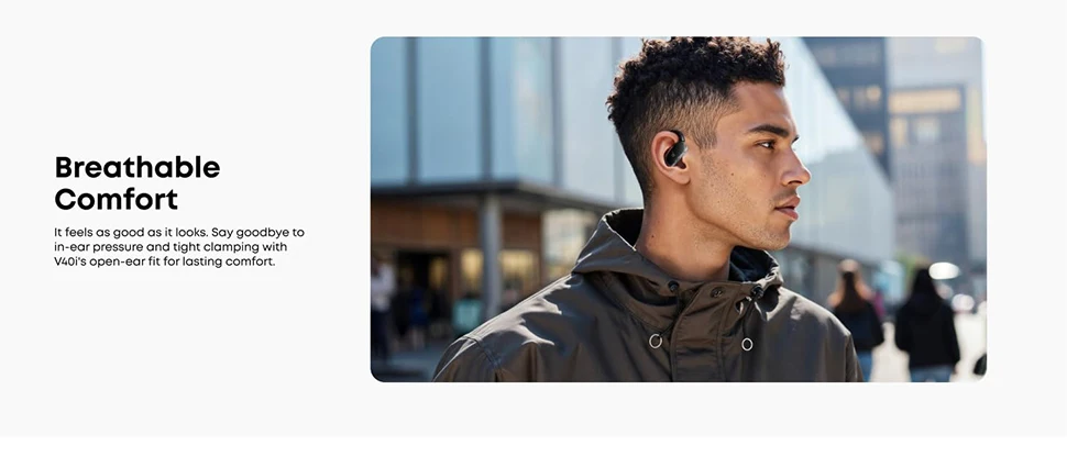V40i's open-ear design frees you from in-ear pressure and tight clamping,
