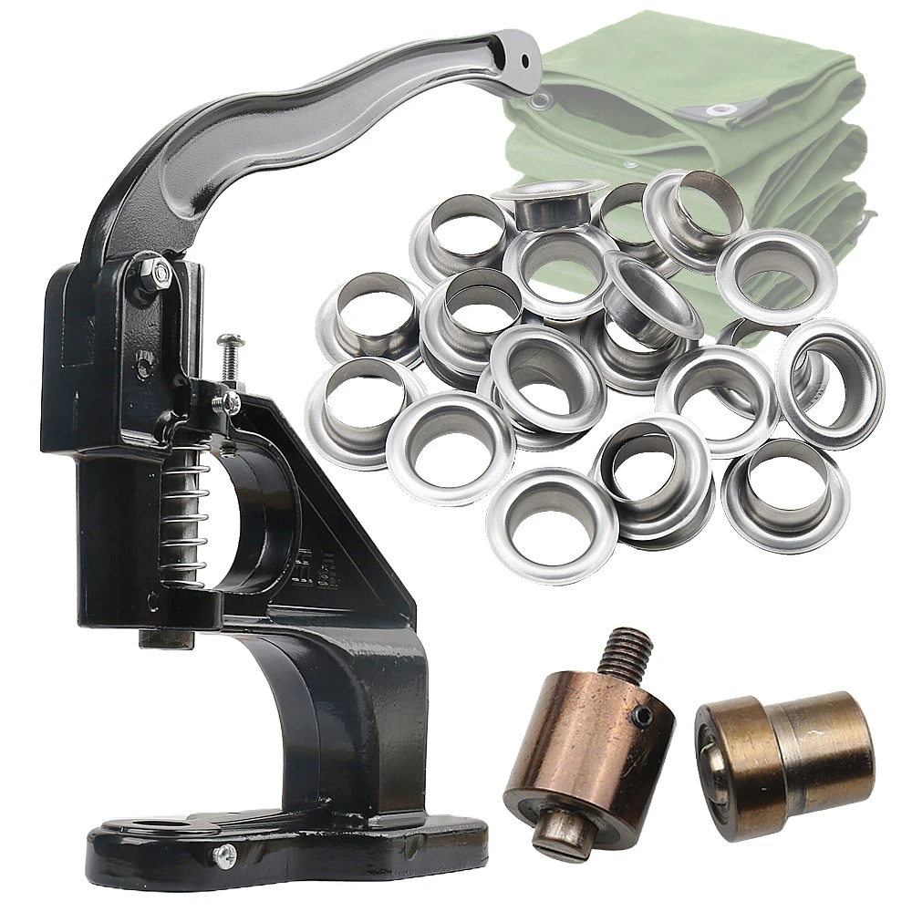 Stainless Steel Eyelets Grommet with Multifunctional Hand Press Tool Kit Round Rings Punch for Tarpaulin Curtains Leather Crafts