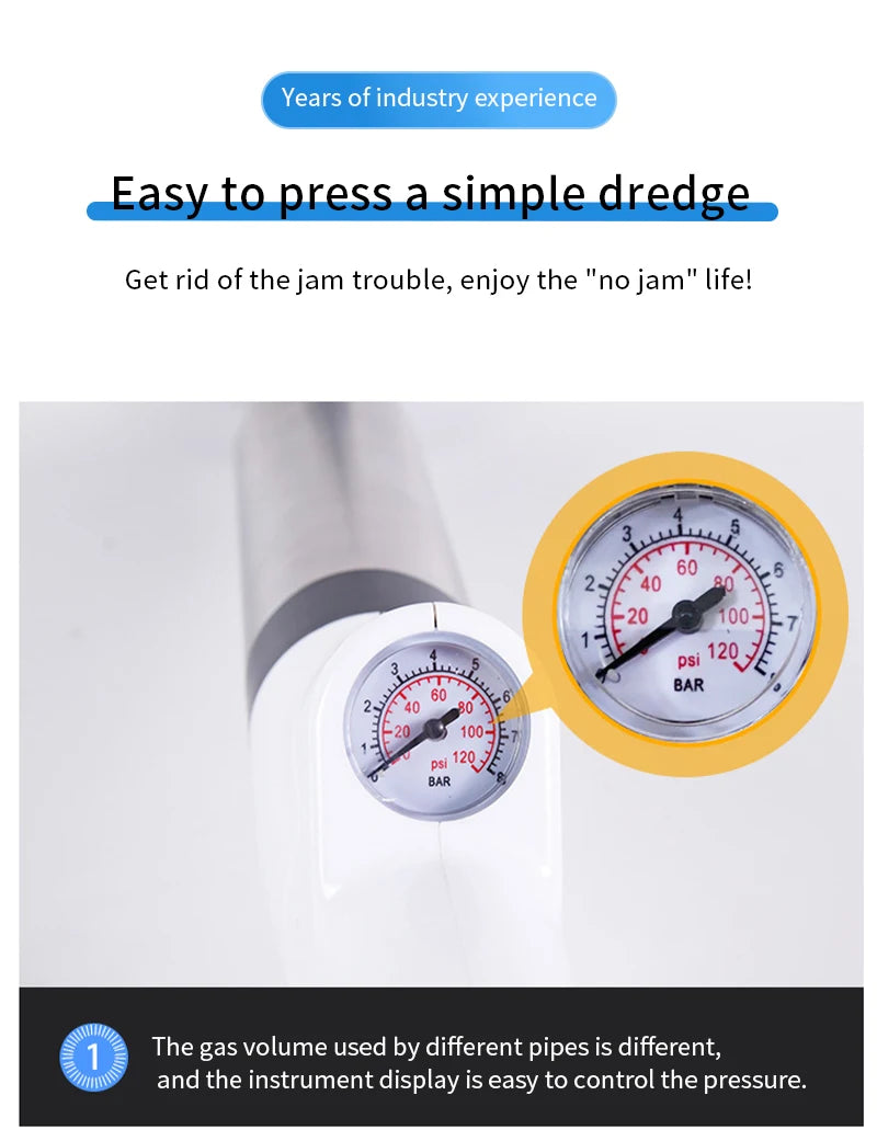• Thickened Wall Cylinder :The thickened wall cylinder design of this pipe dredger provides sturdy and safe handling, preventing any damage to your pipes or property.