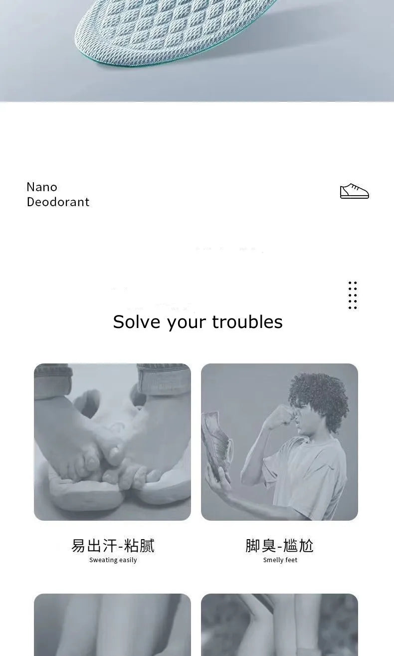 Summer Deodorant Sports Insoles for Shoes Sweat-absorbing Breathable Deodorant Anti-sweat Soft Shoe Pads Inserts for Man Women