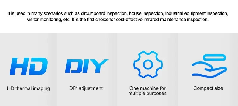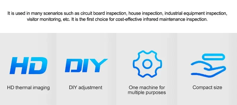 .It is used in many scenarios such as circuit board inspection, house inspection, industrial equipment inspection, visitor monitoring, etc. It is the first choice for cost-effective infrared maintenance inspection.