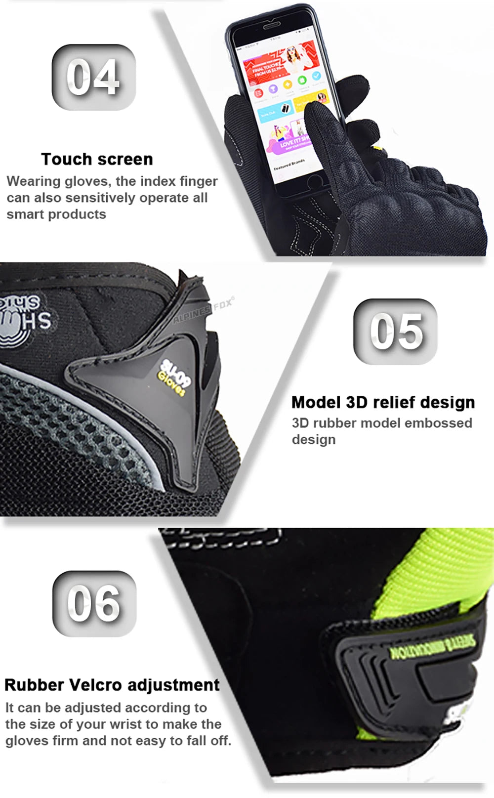 1.The wrist devil adjustment design. Let the glove is not easy to fall off