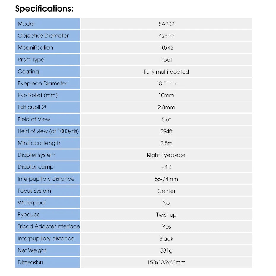 Sturdy rubber armor ensures a non-slip grip|, and withstand diverse environmental conditions, and absorb shock for maximum protection for the binoculars, all of which make SA202 best for outdoor use.