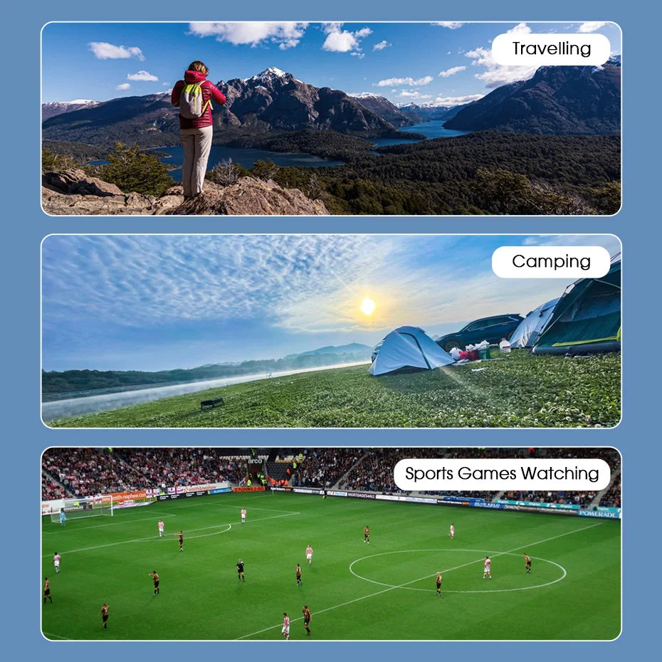 10X power magnification and large field of view: 294ft at 1000yds, specially designed for outdoor activities such as climbing, hiking, driving, watching wildlife and scenery. This power can also be used for watching large stage plays, vocal concerts, sports games, etc.