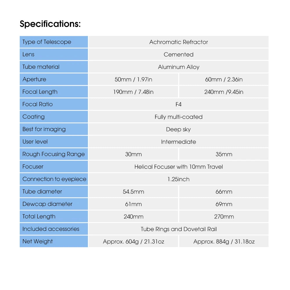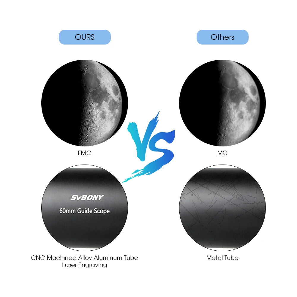 SVBONY Telescope Guide Scope 50mm/190 ,60mm/240mm,Compact Deluxe Guide Scope w/1.25" Double Helical Focuse SV106
