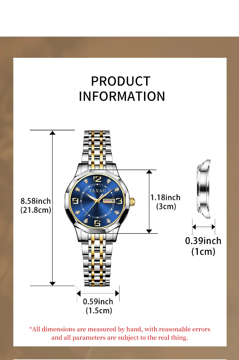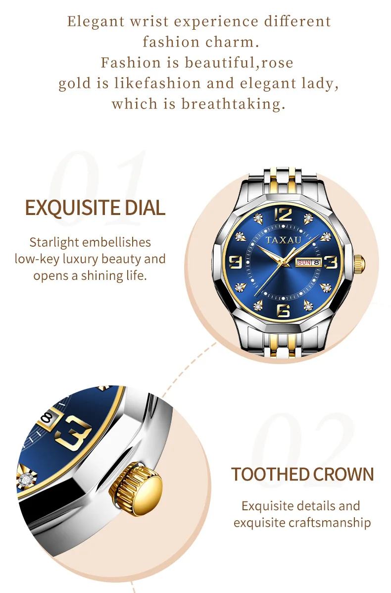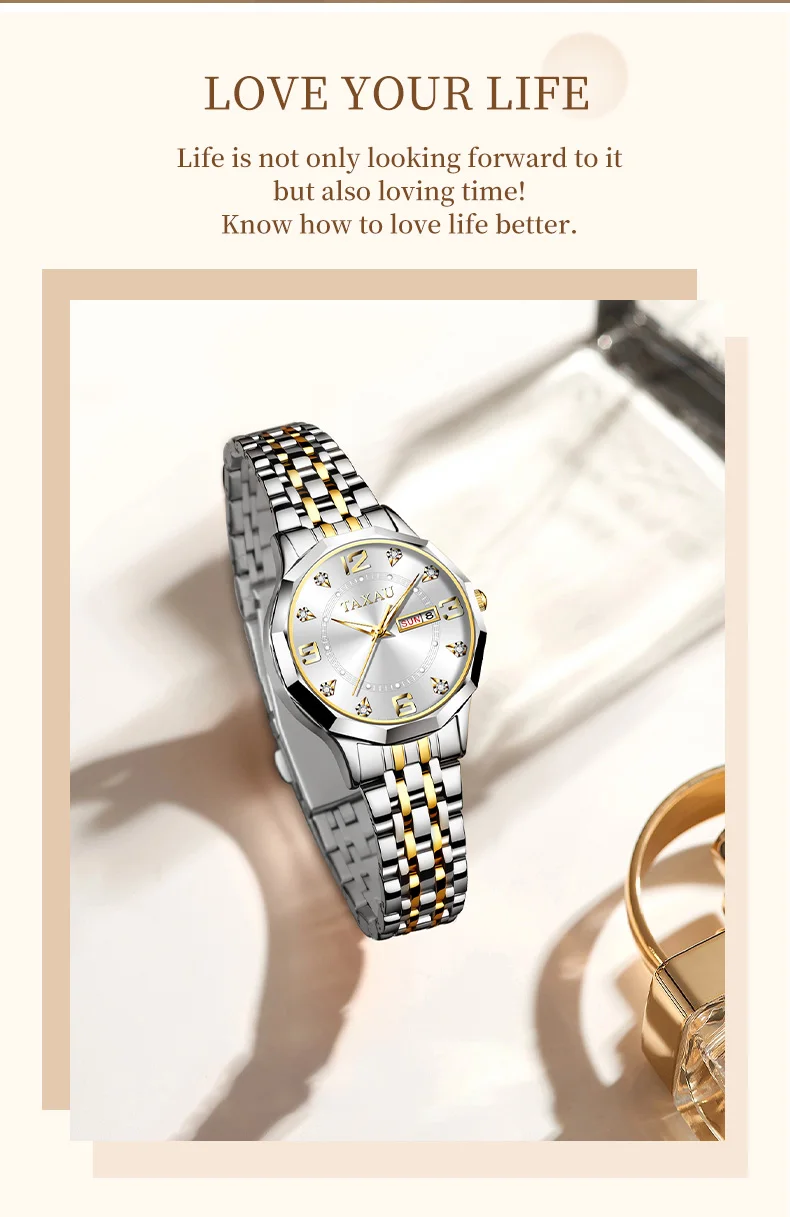 TAXAU High Quality Quartz Women's Wristwatch Elegant Waterproof Luminous Watch for Women Classic Date Week Display Women Watches