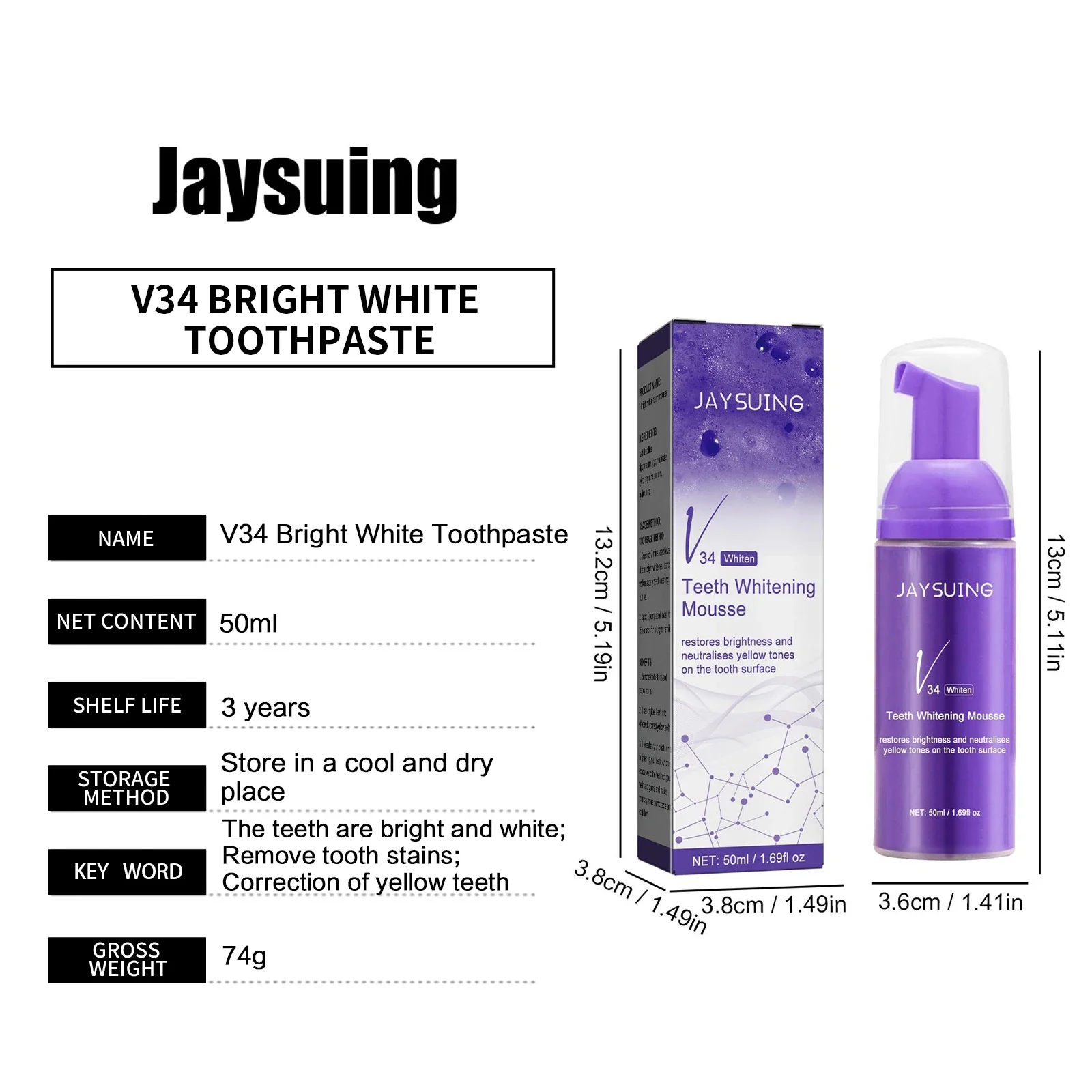 Teeth Whiten-ing Mousse V34 Colour Dental Enamel Care Cleansing Stains Melanin Removal Tooth Bleaching Foam Toothpaste 50ml