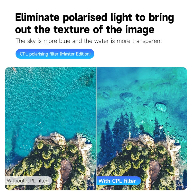 4.Eliminate polarised light to bring out the texture of the image The sky is more blue and the water is more transparent.