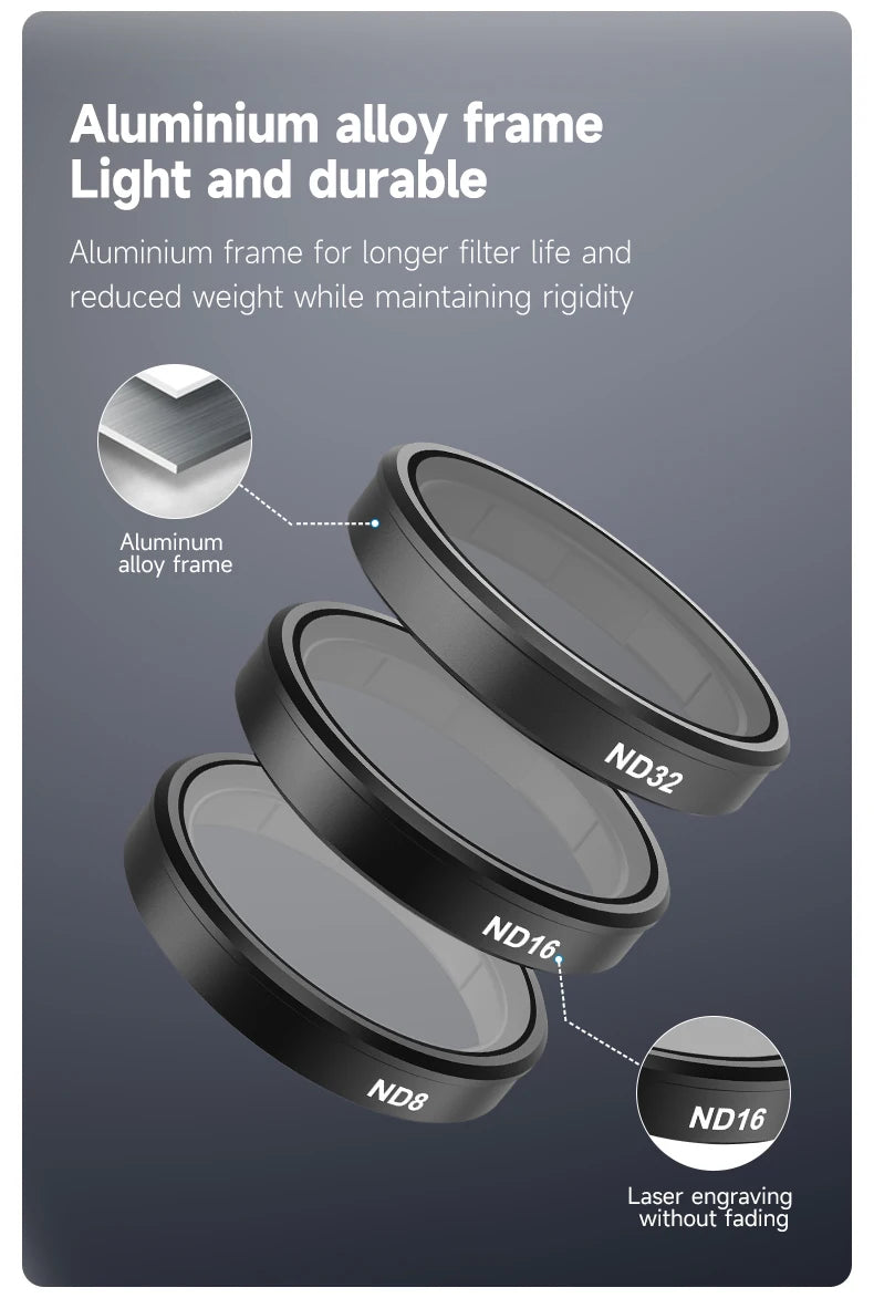TELESIN CPL ND8 ND16 ND32 Lens Set Aluminium Alloy Frame for DJI OSMO Action 3 4 5pro ND CPL Filter Action Camera Accessories