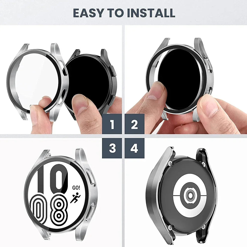 Tempered Glass+PC Cover for Samsung Galaxy Watch 4 5 6 44mm 40mm All Coverage Protective Bumper Case Galaxy Watch4 5 Accessories