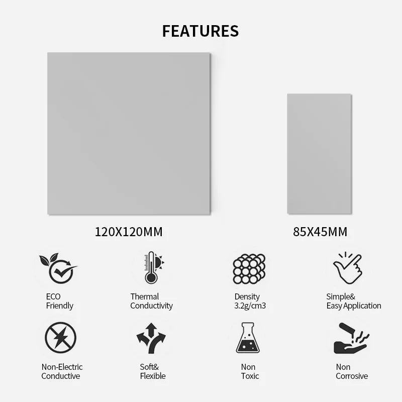 WIDE APPLICATION - Perfectly replace traditional heatsink compound grease paste, ideal for control board, motor, electronics, CPU, GPU, heat sink, power LED, auto mechanics, computer host, laptop, DVD, VCD , LID, decoder, LED IC SMD DIP and any cooling modules