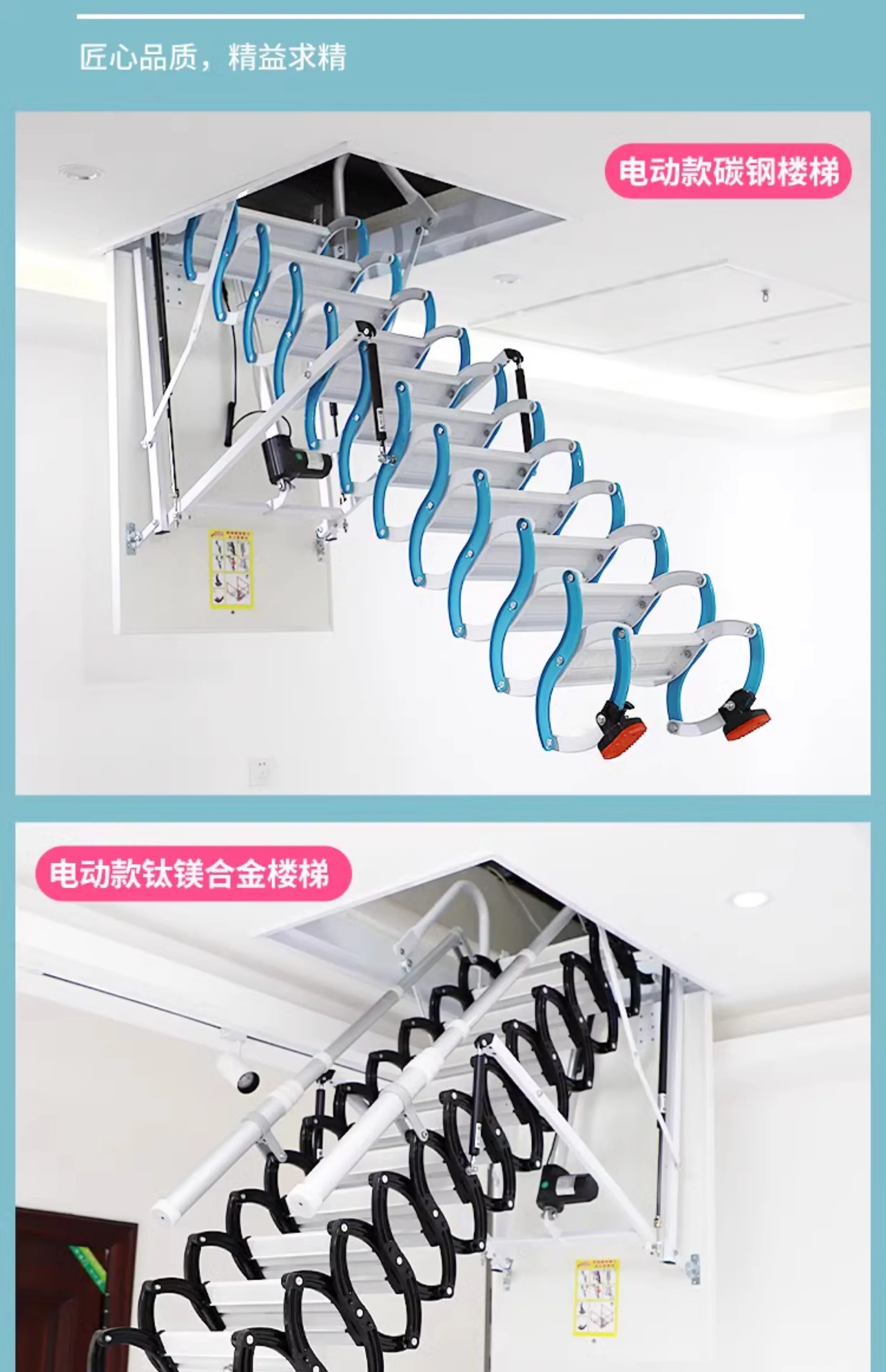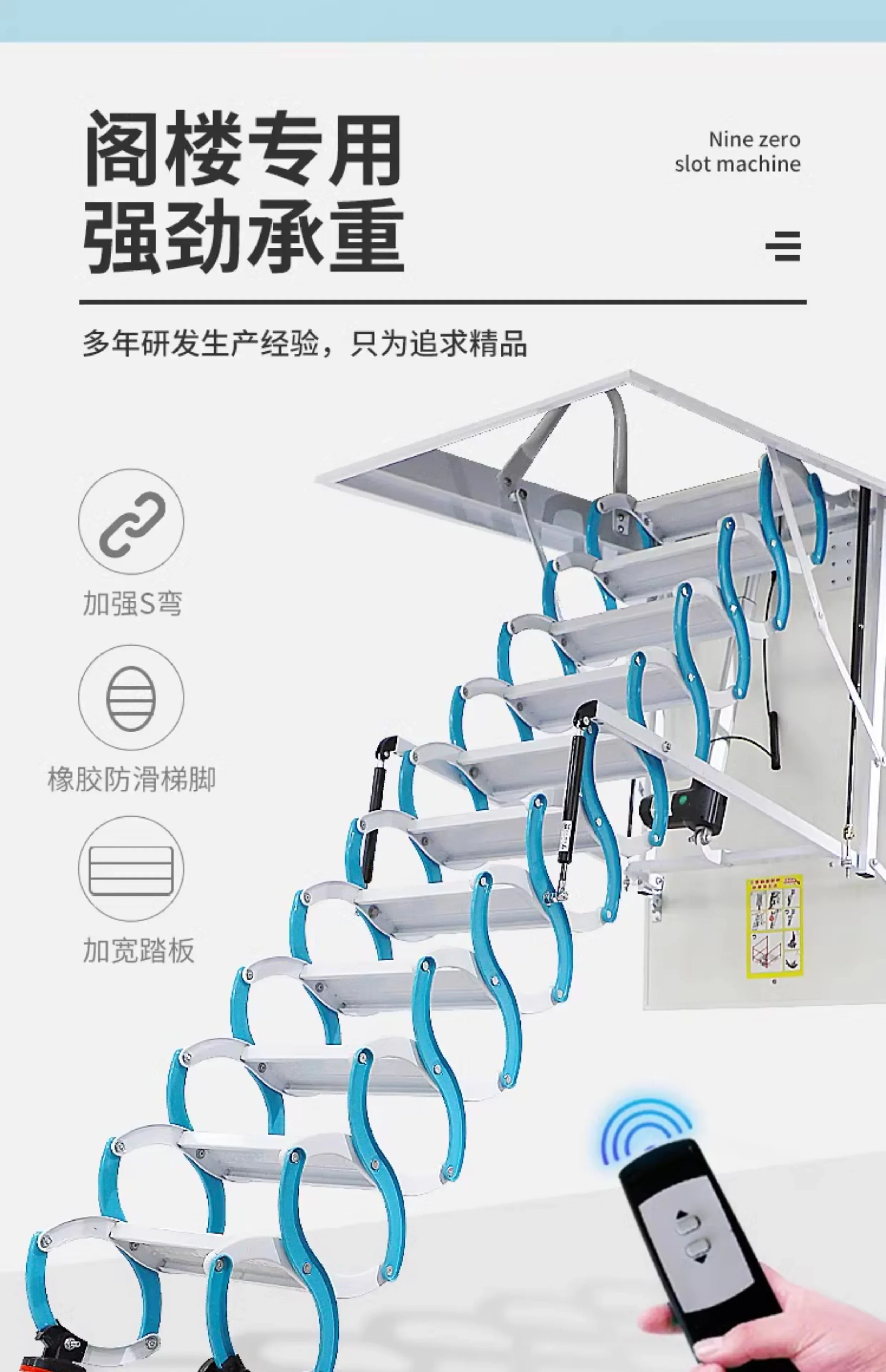 Thickened silent electric loft telescopic stairs, fully automatic, invisible indoor stretching folding ladder, villa elevator