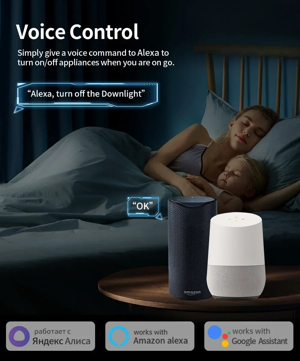The smart WIFI plug socket is perfectly compatible with Amazon Alexa, Google Home, and so on. Just simply give a voice command to your Alexa or Google Home Assistant to control your devices when you are on go.