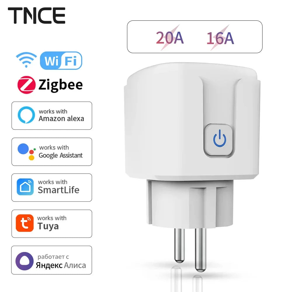 TNCE Tuya Smart Home Socket WiFi/Zigbee 16/20A EU Plug Outlet Remote Control Timer Power Monitor Support Voice Google Home Alexa