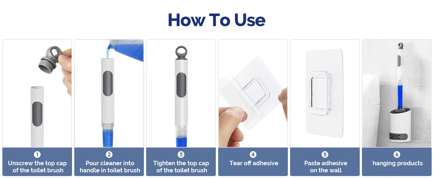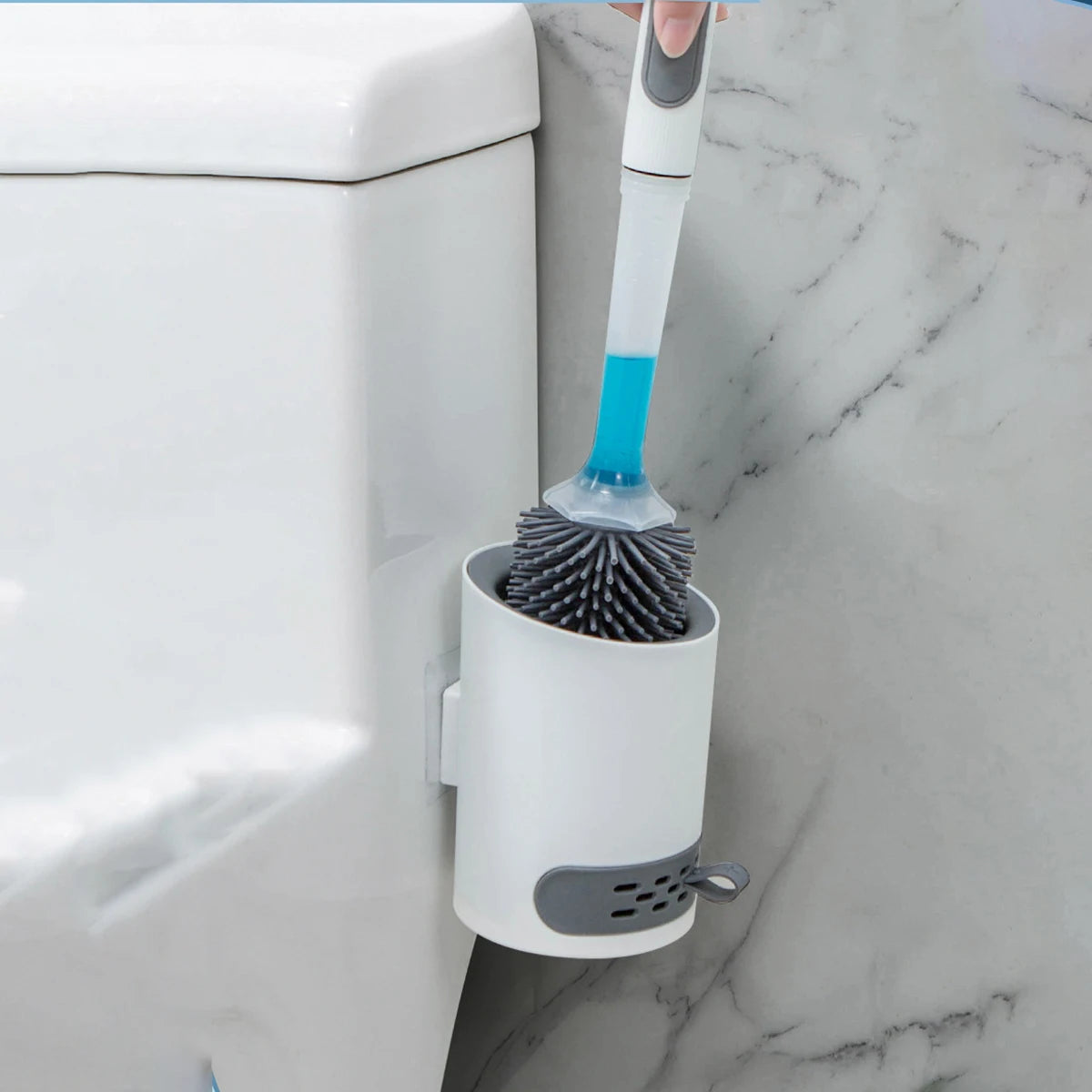 Toilet Bowl Brush Holder Set: Silicone Toilet Brush with Refillable Handle Dispenser Bathroom Scrubber Rv Cleaner Toilet Brush