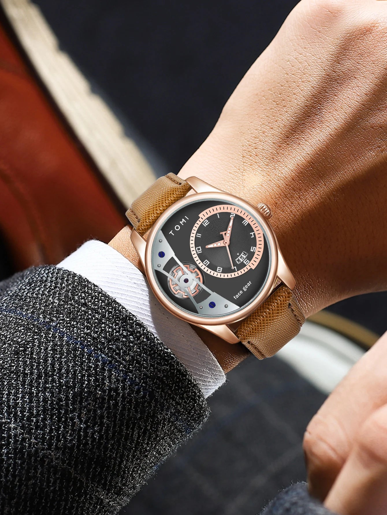 TOMI Set Gift Box for Men's Minimalist Business Quartz Watch Luxury Versatile Double Strap Detachable Watch Festival Gift